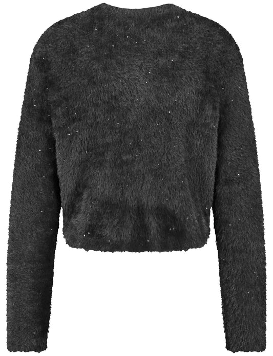 AusverkauftFlauschige Strickjacke mit Glitzer-Pailletten