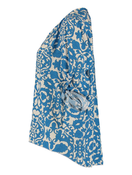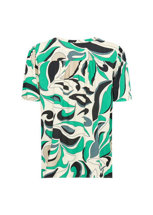 Bluse SUMMER GARDEN mit geschlitztem Rundhalsausschnitt