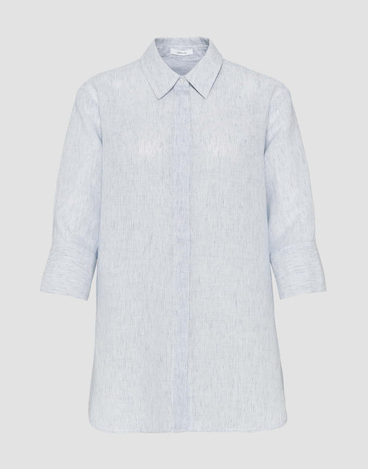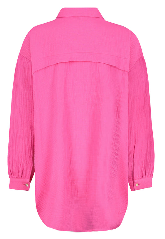 DOB LONG-Bluse, Oversize, überschnittene Schulter,Hemdkragen, Knopfleiste, Passe im Rückteil mit Überlappung, gerundeter Saum