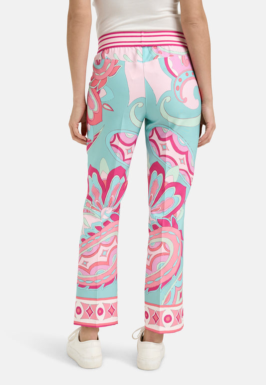 Pants with elastic waistband, pin tucks at frontlegs and kickflar
