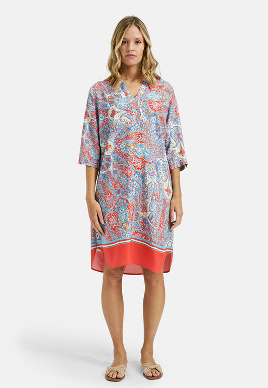 DOB Midi-Stufenkleid, ärmellosV-Auschnitt mit breitem Einsatz