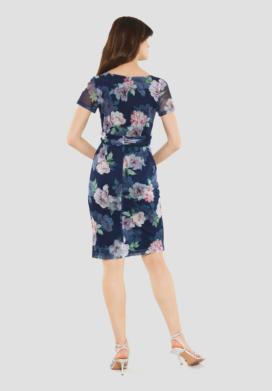 AusverkauftTageskleid aus Mesh mit Blumendruck