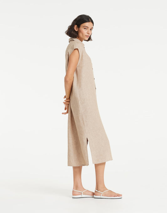 DOB Hemdblusenkleid, MIDI, langarm, Kragen,Knopfleiste, Brusttaschen,Manschette mit Ärmelschlitz und Falten