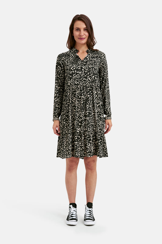 Midi-Stufenkleid, ärmellosV-Auschnitt mit breitem Einsatz