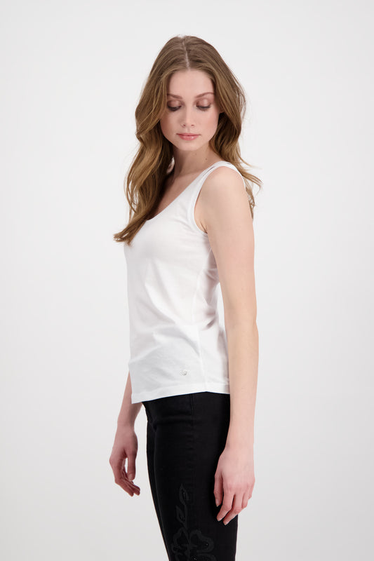 Top,Rundhals+Armlöcher mit Piping,Teilungsnaht vorne,Knoten genäht am Saum,Druck auf Brustposition