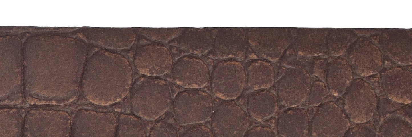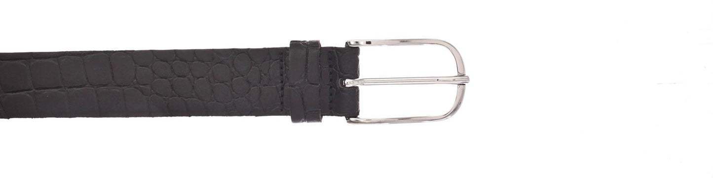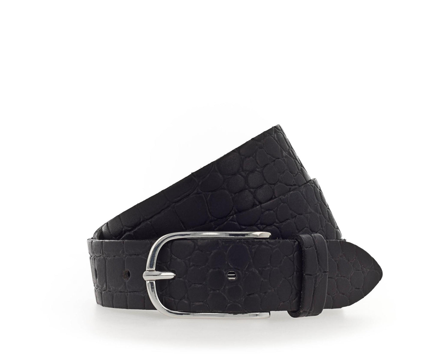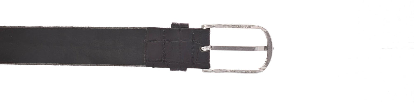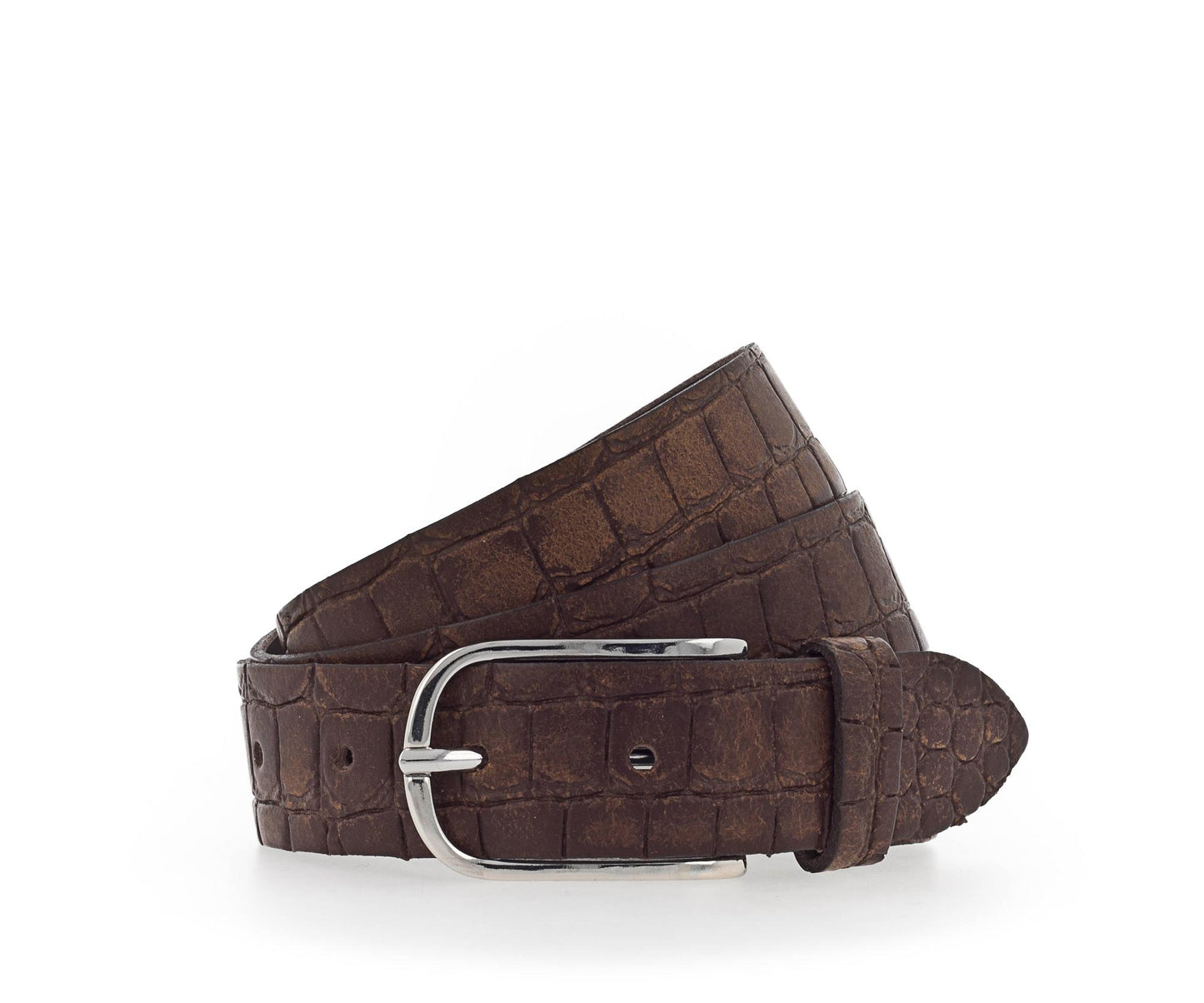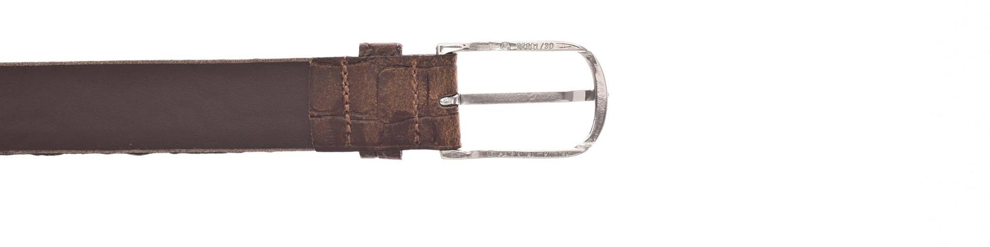 Der Echtleder-Gürtel ist 30 mm breit mit Krokoprägung und einer schlichten Dornschließe in glänzendem Silber verziert. Das Material ist ein Leder mit leichten Millkornnarben mit Vintagecharakter. Dieser Gürtel ist die ideale Ergänzung zu allen Freizeit-Outfits und garantiert einen anspruchsvollen und casual Look. MADE IN METZINGEN. Die vollständige Fertigung im Vanzetti-Headquarter, am Modestandort Metzingen beim Familienunternehmen Bazlen, garantiert ein nachhaltig hergestelltes Produkt.