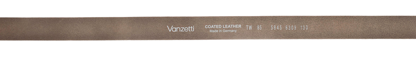 Der Velours-Gürtel ist 35 mm breit und mit einer schlichten Dornschließe in glänzendem Silber verziert. Das Material ist ein Rindleder mit velourisierter Oberfläche mit samtigem Griff. Dieser Gürtel ist die ideale Ergänzung zu allen Freizeit-Outfits und garantiert einen femininen und modischen Look. MADE IN METZINGEN. Die vollständige Fertigung im Vanzetti-Headquarter, am Modestandort Metzingen beim Familienunternehmen Bazlen, garantiert ein nachhaltig hergestelltes Produkt.Obermaterial: 90% Leder, 10% Polyester