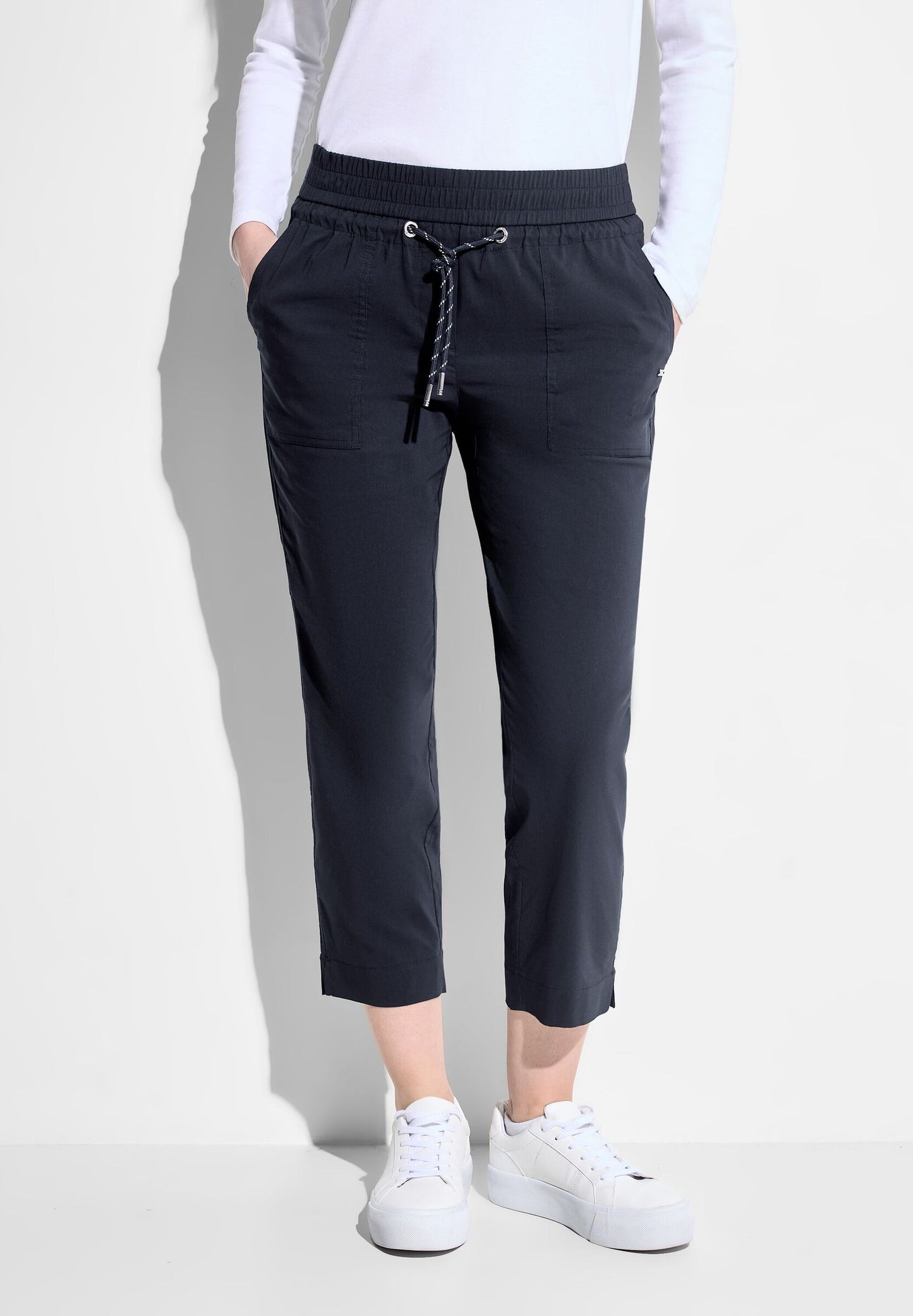 Die 7/8 Hose im Style Tracey von CECIL für Damen kombiniert Bequemlichkeit und Stil mit einem lässigen Casual Fit und einer Mid Waist. Mit einem Gummibund, Tunnelzug und praktischen Eingriffstaschen bietet sie optimale Funktionalität für den Alltag. Dank der Baumwollmischung mit Stretchanteil ist sie der perfekte Begleiter für warme Tage und bietet sowohl Komfort als auch Bewegungsfreiheit.