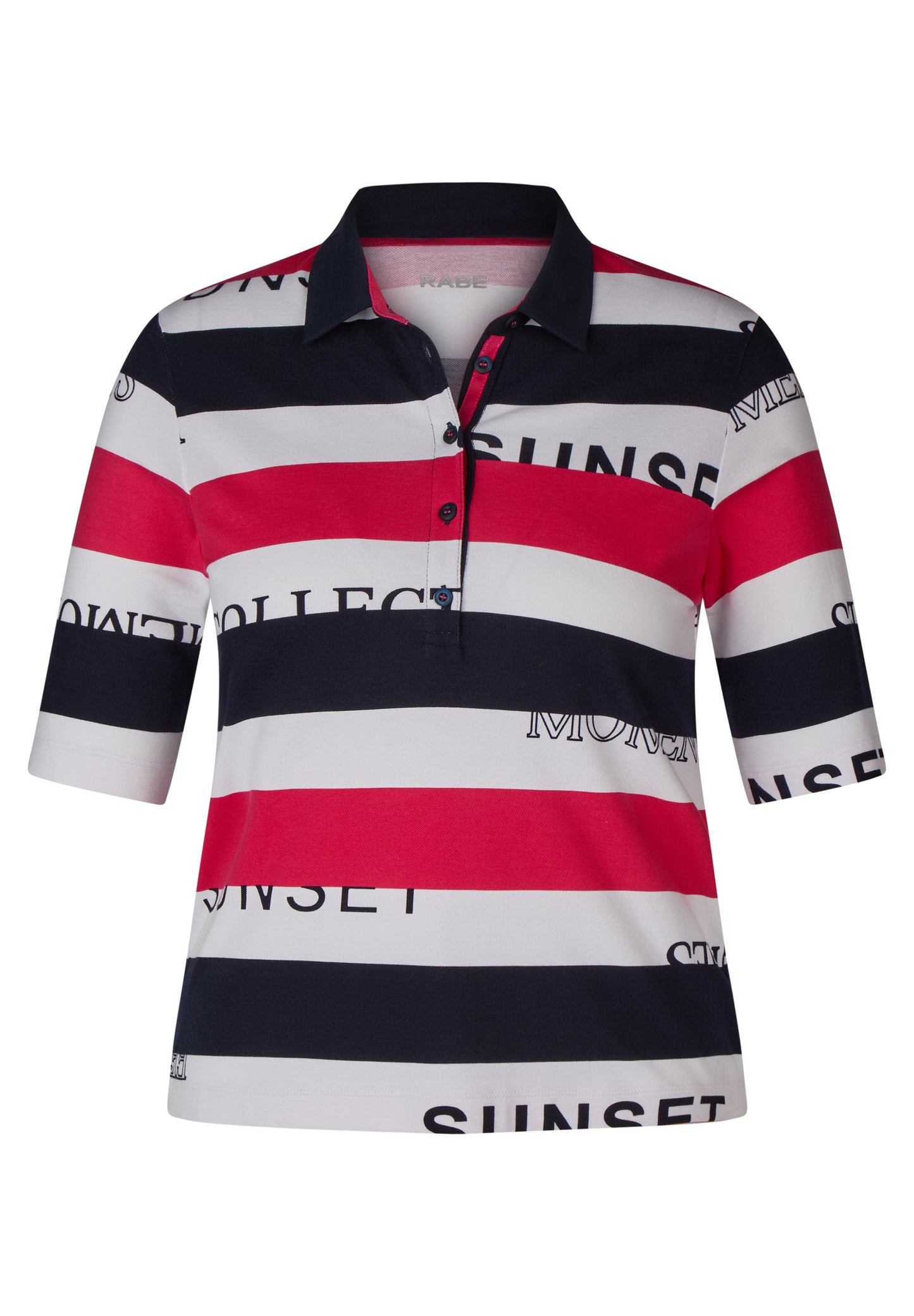 Dieses kühne und stilvolle Poloshirt kombiniert klassische Streifen mit einem modernen Twist. Die markanten pink-, weiß- und blauen Streifen rufen Bilder von maritimen Abenteuern und sommerlichen Hafenstädten hervor, während die eingewebten Wörter wie "SURF", "SUNSET" und "MEMORIES" die Sehnsucht nach sonnigen Tagen und unvergesslichen Momenten wecken. Mit seinem Kragen und der halben Knopfleiste ist dieses Poloshirt ein perfektes Balanceakt zwischen lässiger Eleganz und sportlichem Komfort.95 % Baumwolle, 5 % Elasthan