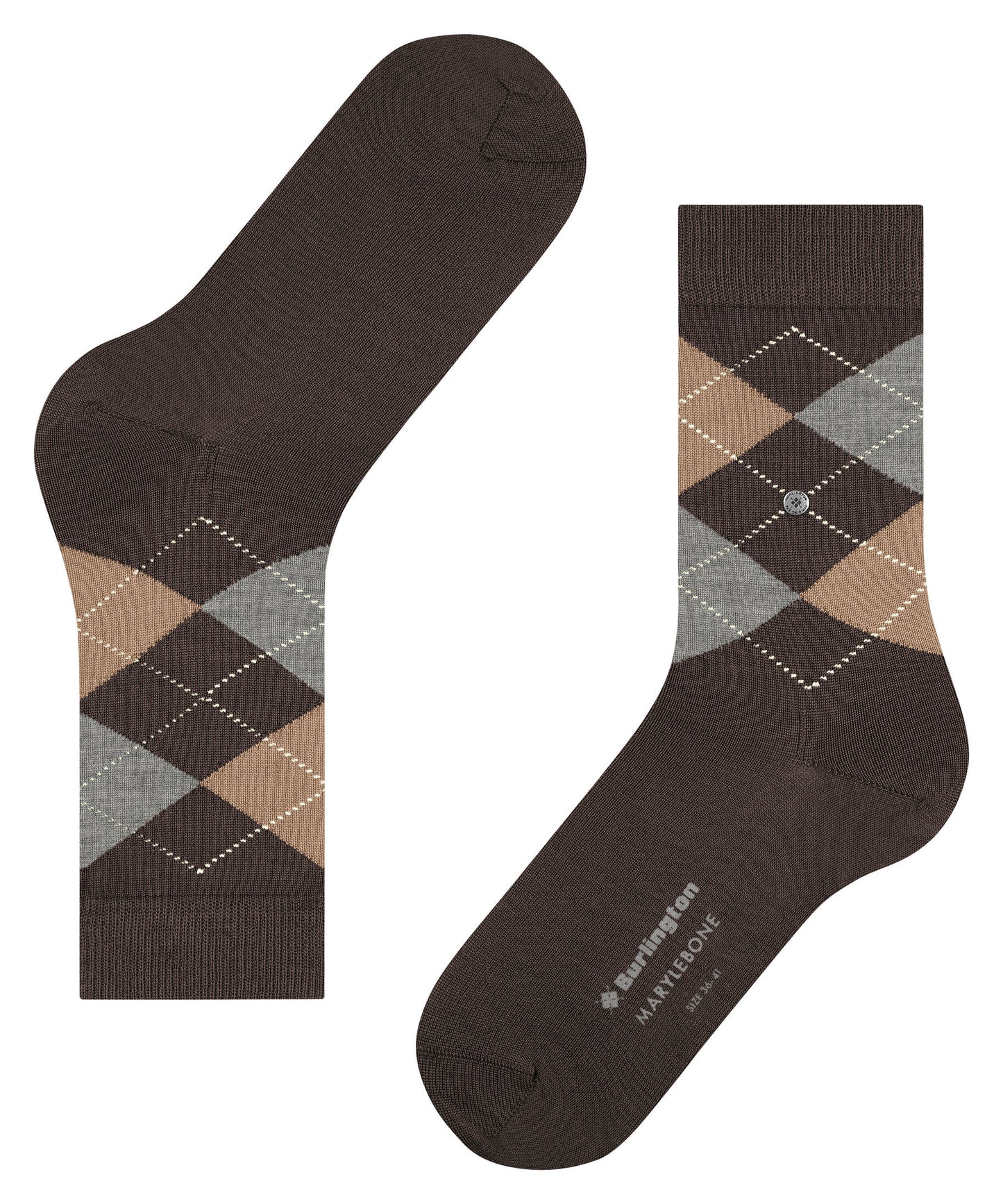 Very classy! Die Strümpfe Marylebone sind mit dem authentischen Argyle-Muster wahre Klassiker, die dank hochwertiger Schurwolle für höchsten Tragekomfort sorgen. Dabei verspricht die große Farbauswahl Abwechslung an jedem Tag. Relaxed mit Sneakern oder Loafern, absolut fashionable mit Ankle Boots!71 % Schurwolle, 29 % Polyamid