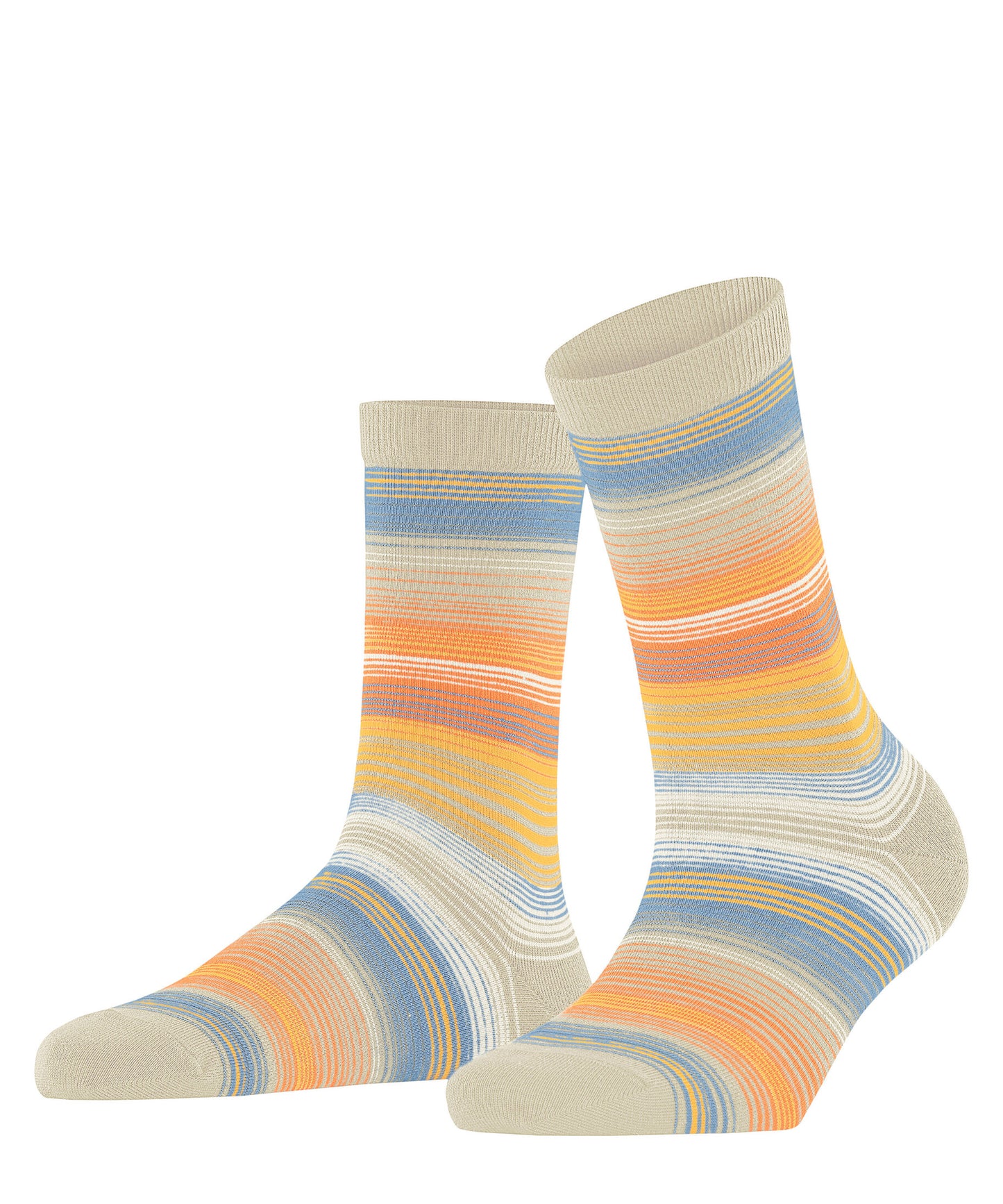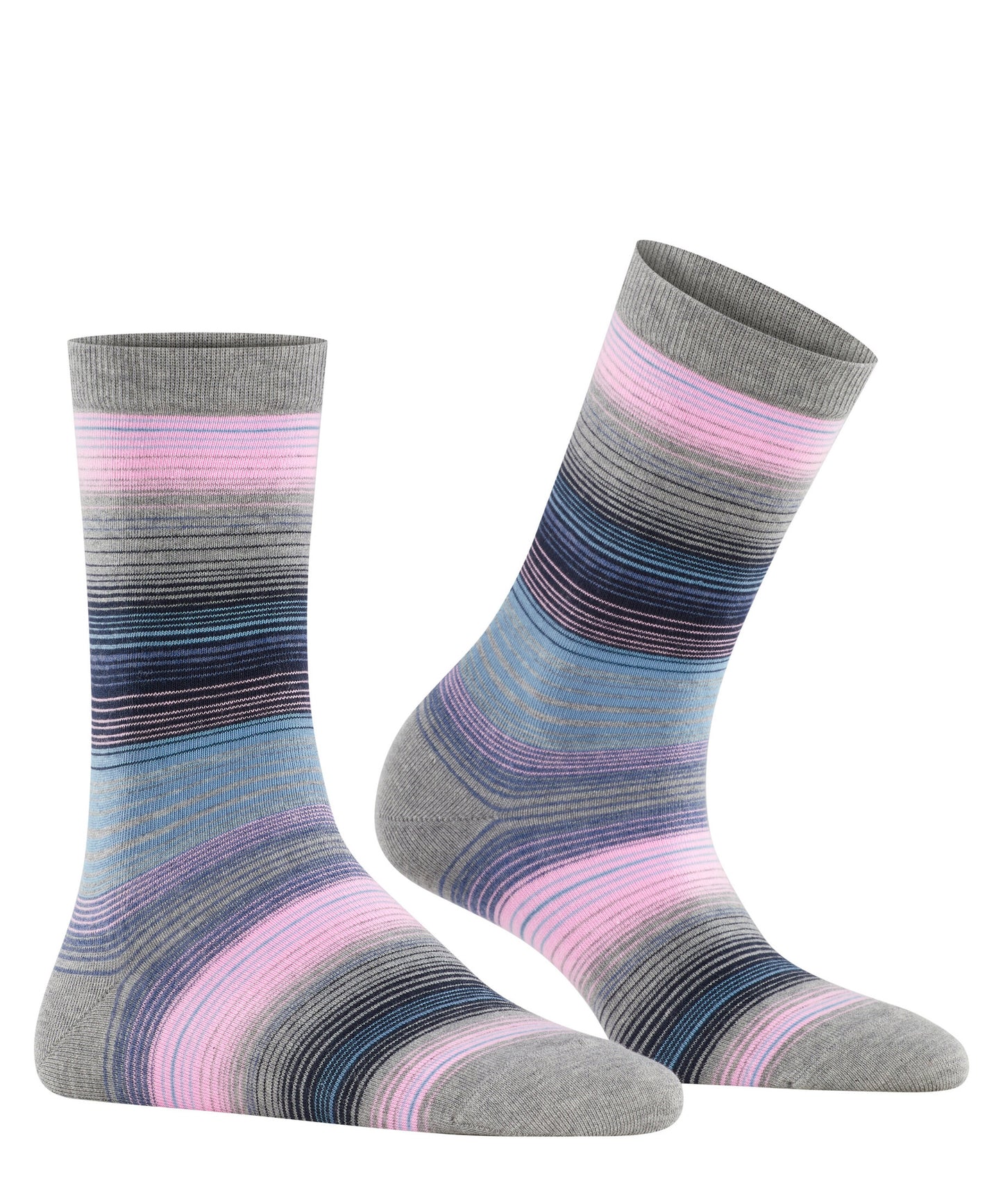 Das klassische Streifenmuster erstrahlt im modern-verspielten Glanz! Bei diesem Strumpf dreht sich alles um eine Vielzahl von femininen, filigranen Ringeln in einer verspielten Mischung aus ideal aufeinander abgestimmten Farben. Dieser Strumpf sorgt optisch für gute Laune und verspricht durch die zarte Baumwollmischung zudem einen hohen Tragekomfort.89 % Baumwolle, 9 % Polyamid, 2 % Elasthan