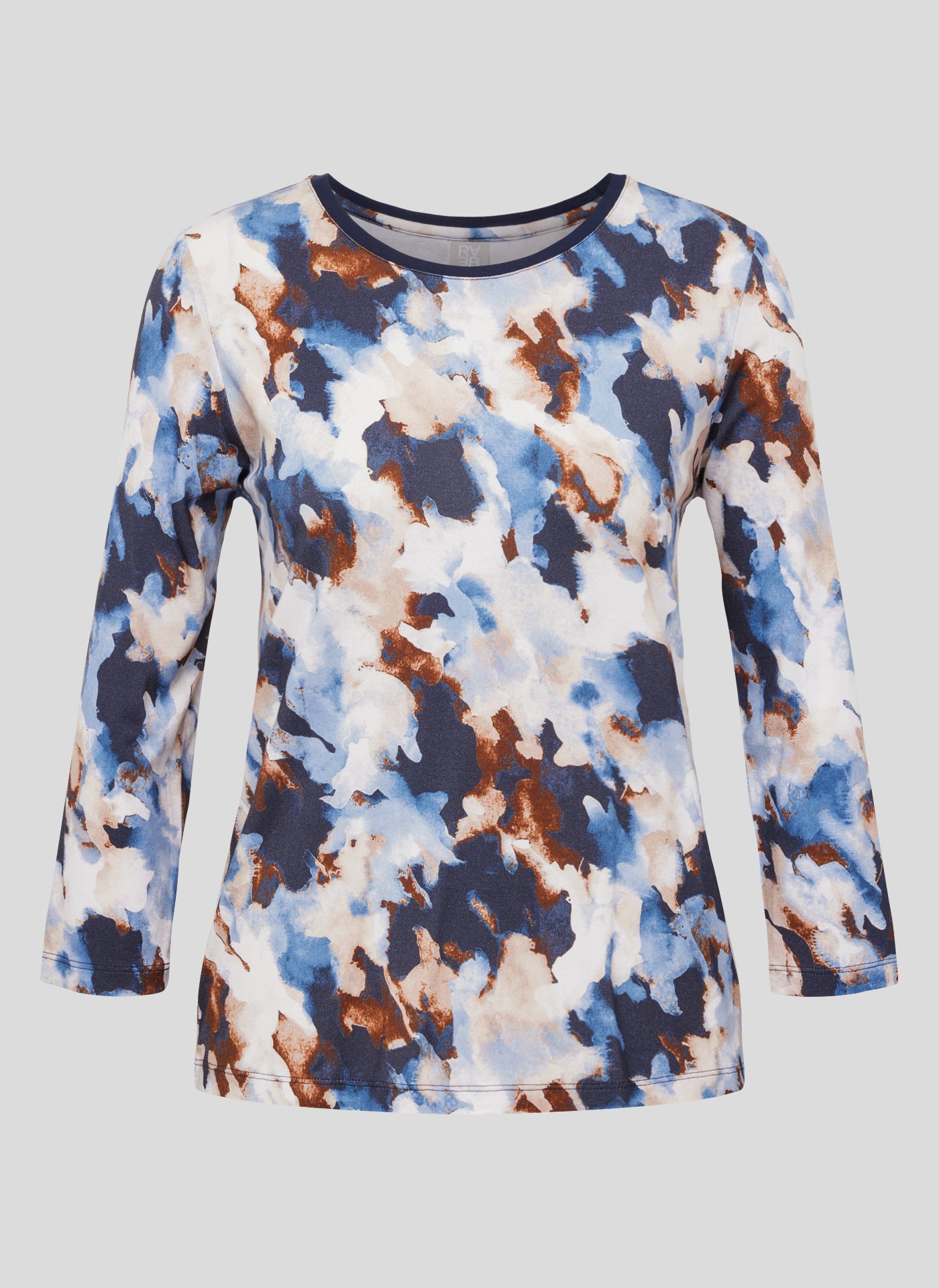 Entdecken Sie das perfekte Oberteil für jeden Anlass mit unserem stilvollen 3/4-Arm-Shirt im künstlerischen Design! Kreative Farbkombination aus Blau, Weiß und Braun für einen einzigartigen Look. Perfekt für Freizeit, Büro oder besondere Anlässe. Verleihen Sie Ihrer Garderobe einen Hauch von Kunst und Eleganz mit diesem außergewöhnlichen Shirt!96 % Viskose, 4 % Elasthan