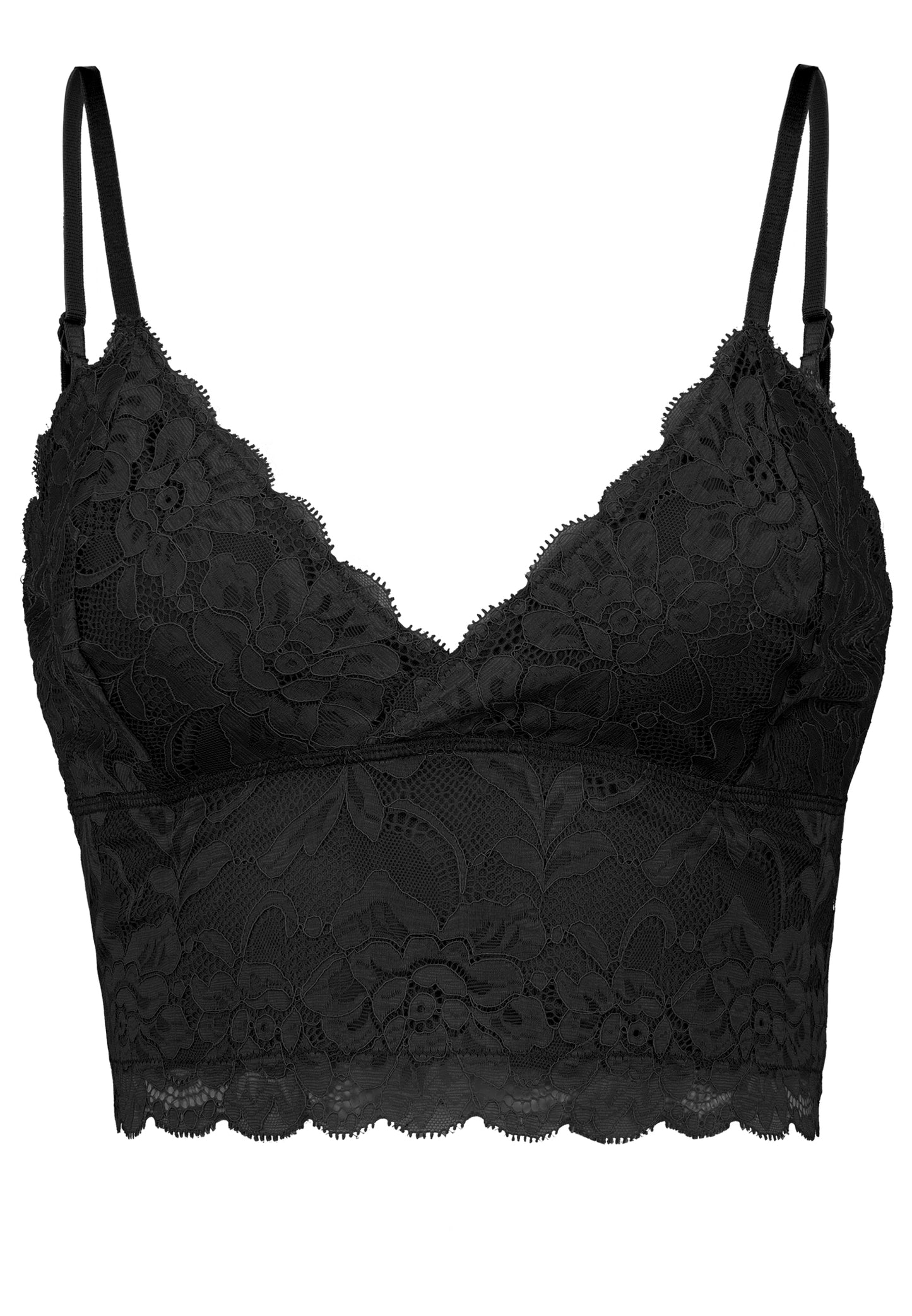 Spitzen Top, V-Ausschnitt, kurze Länge, schmale Träger, gefüttert