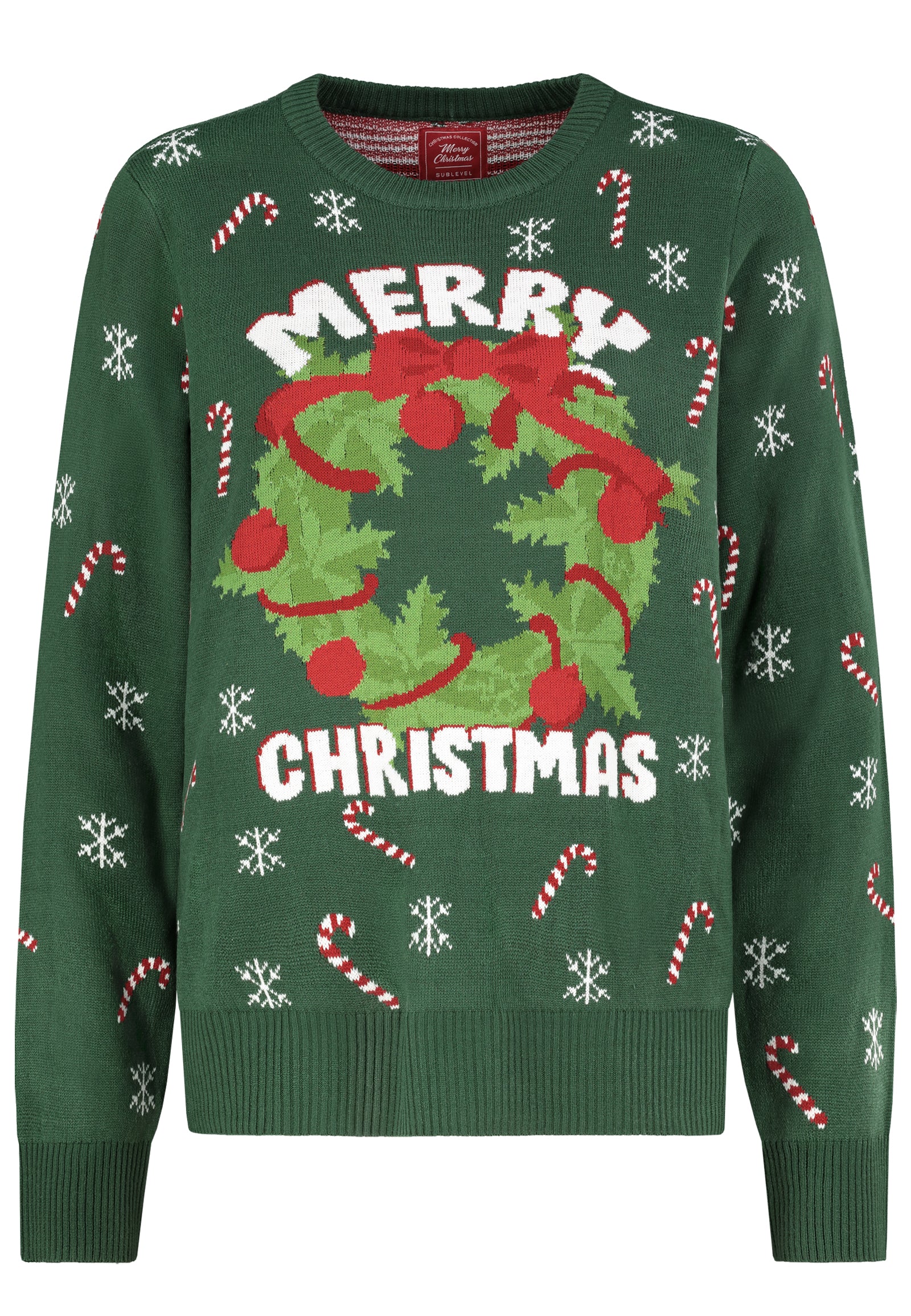 DOB Strick Pullover, langarm, Rundhals mit 2x2Rippstrick Blende, 2x2 Rippstrick an Saum und Ärmelsaum, Christmas Artworks