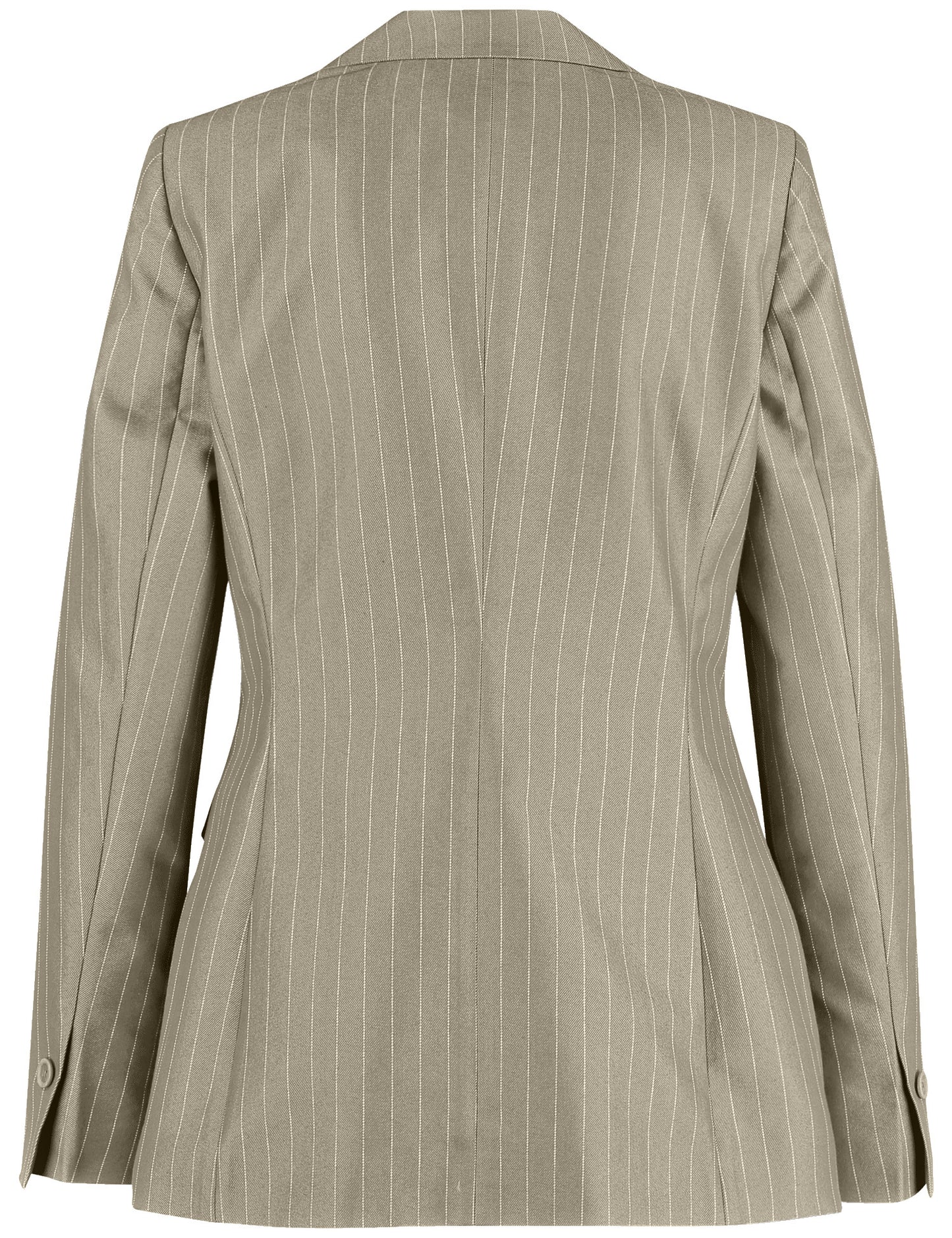 Fein schimmernde, elegante Qualität mit Nadelstreifen. Dieser elegante Blazer in hochwertiger, fein schimmernder Qualität mit klassischen Nadelstreifen verleiht jedem Outfit einen Hauch von Luxus. Der taillierte Schnitt mit Revers und Pattentaschen schmeichelt der Figur und sorgt für einen stilvollen Auftritt. Kombiniere den Blazer mit der passenden Hose für einen atemberaubenden Anzug, der in jeder Situation überzeugt!Außenmaterial: 77 % Polyester, 23 % Viskose; Material 2: 100 % Polyester; 100 % Polyester