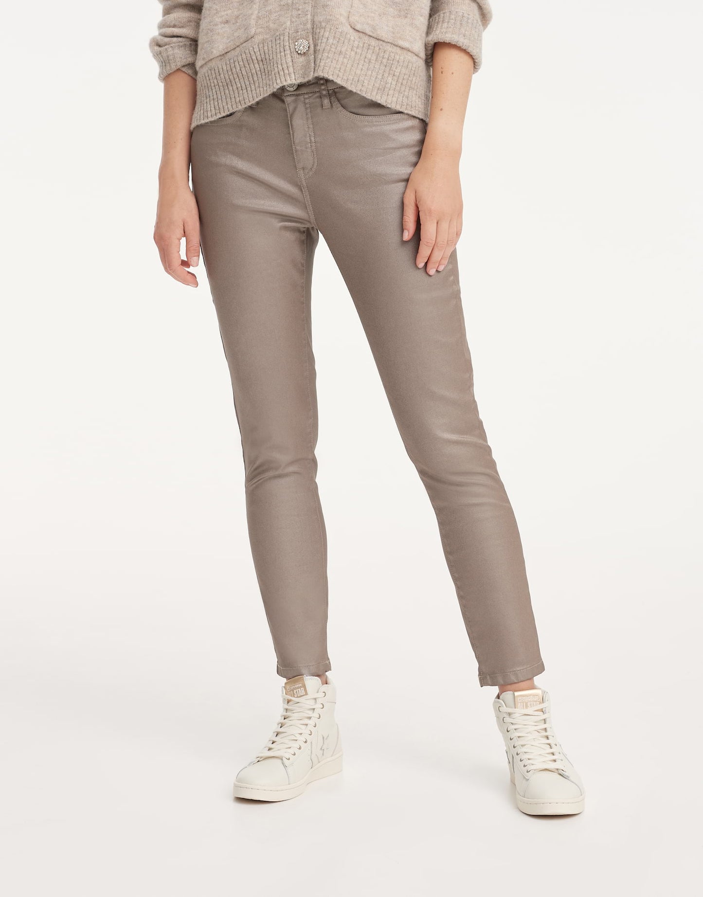 BCI Cotton-Mix, schmale Passform, 5 Pocket Style, Premium Soft coating, softe Oberfläche, tolle Rücksprungkraft, das Model ist 176 cm groß und trägt Größe 3698% Baumwolle, 2% Elasthan
