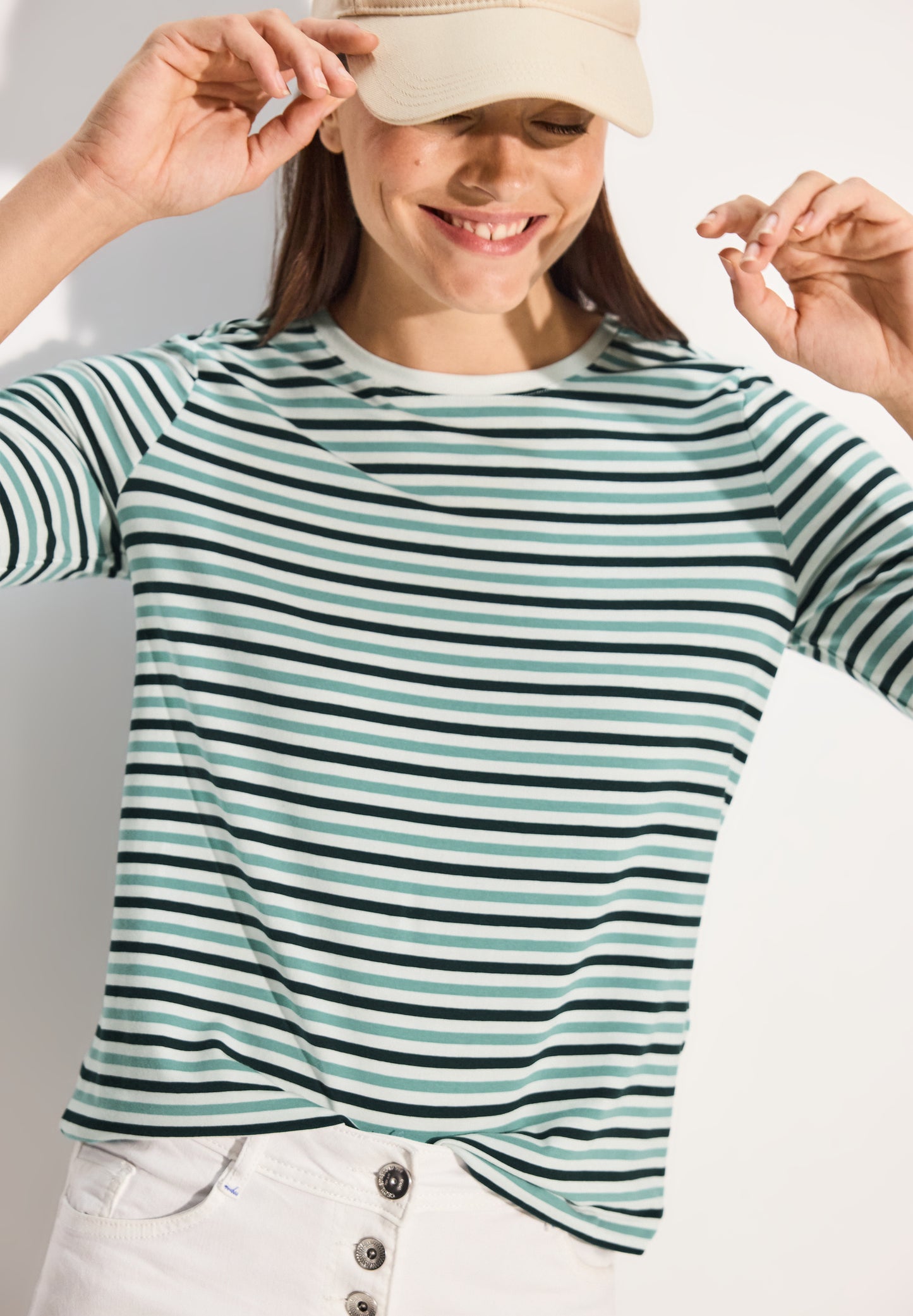 Das gestreifte Shirt von CECIL für Damen ist dein vielseitiger Begleiter für den Alltag. Das Shirt mit 3/4-Arm und Rundhalsausschnitt überzeugt mit seinem mehrfarbigen Streifenmuster. Der Materialmix mit Stretchanteil macht es weich und bequem. Shirt mit 3/4-Arm Rundhals Mehrfarbige Streifen Materialmix mit Stretchanteil Weich und bequem Material: 47% Baumwolle, 47% Modal, 6% Elasthan47 % Baumwolle, 47 % Modal, 6 % Elasthan