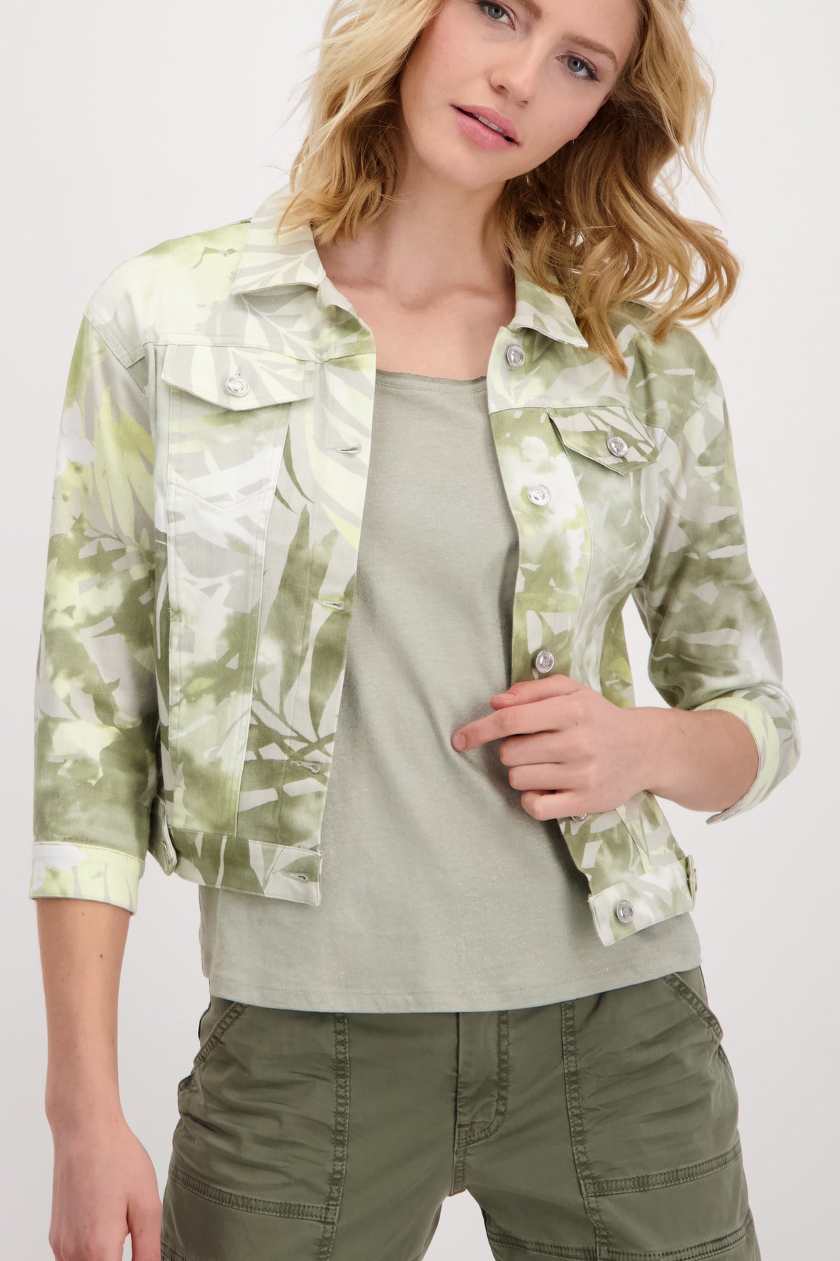 Die Jeansjacke im floralen Design mit Palmenblättern von monari rettet jedes Ihrer Outfits. Das ¾-Arm Modell mit Hemdkragen, geradem, kurzem Fit und einer Verarbeitung aus hochwertiger Baumwolle mit elastischer Qualität fühlt sich angenehm und locker auf Ihrer Haut an. Vorverlegte Schulternähte, Längsteilungsnähte, Passe auf der Vorder- und Rückseite sowie coole Pattentaschen mit Knopfverschluss auf Brusthöhe sind formgebende Details der angesagten Indoor-Jacke. Unterstreichen Sie Ihre Outfits mit dieser gut ausgewählten Jacke.97% Baumwolle, 3% Elasthan