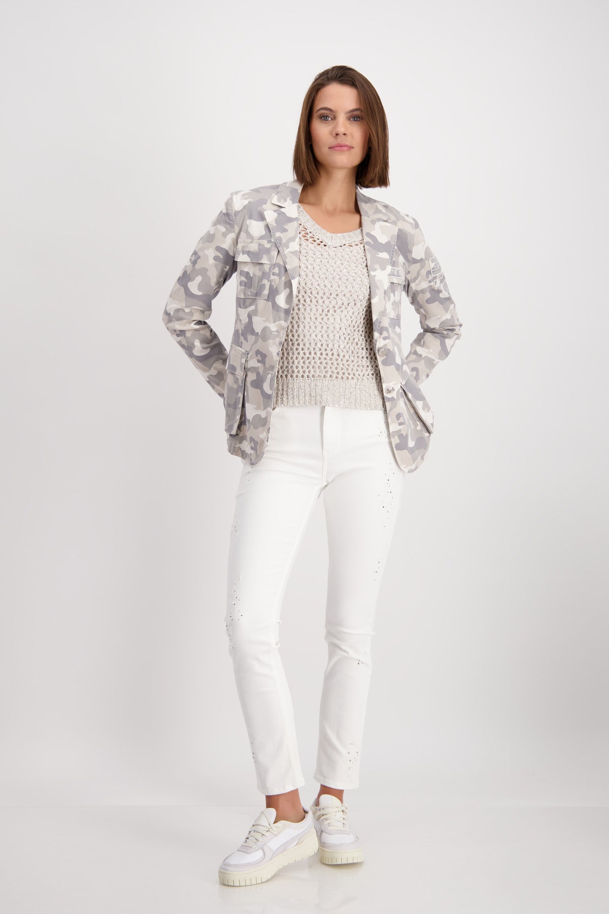 Klassischer Camouflage Blazer aus sanftem Lyocell-Stoff-Mix. Mit Patches auf dem linkem Arm und der Brusttasche.60 % Lyocell, 37 % Baumwolle, 3 % Elasthan