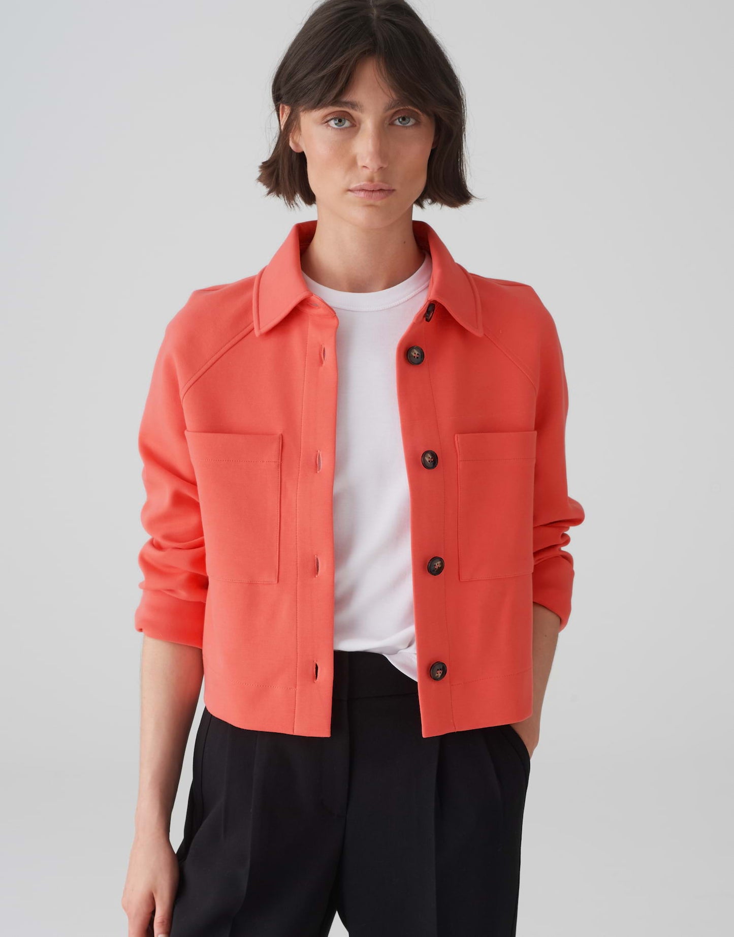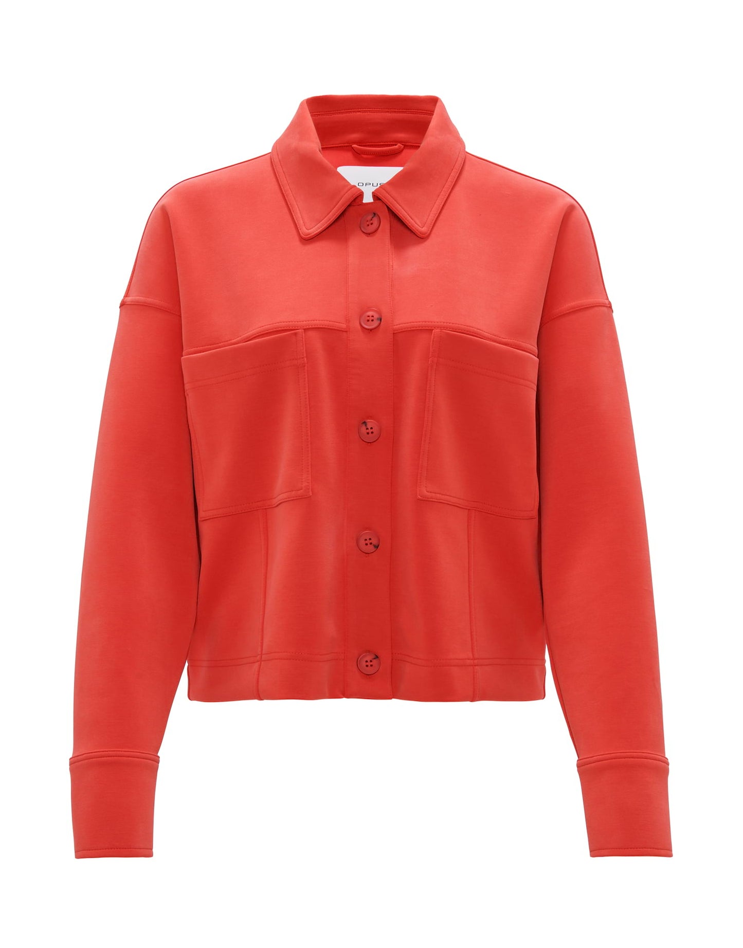 Lockere Passform, Boxy Silhouette, verkürzte Länge, Umlegekragen, Langarm, Rückenlänge ca. 52 cm bei Größe 36, Model Größe 178 cm trägt Größe 36, Sweatware, weicher Griff, formbeständig, Raglanärmel, aufgesetzte Brusttasche, Knöpfe im Marmor-Optik, klassische Manschette, Längsnaht hinten68% Baumwolle, 24% Polyester, 8% Elasthan