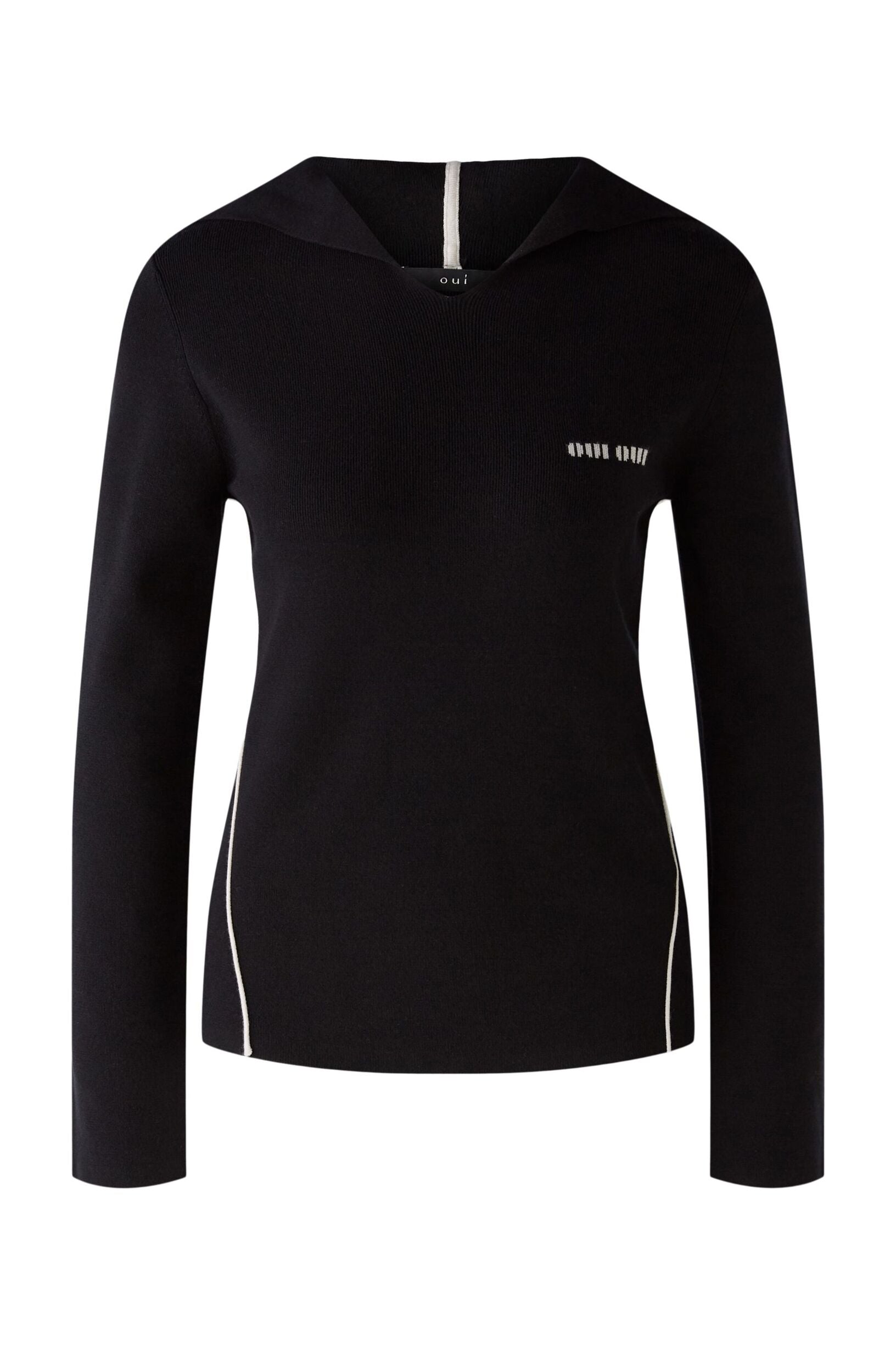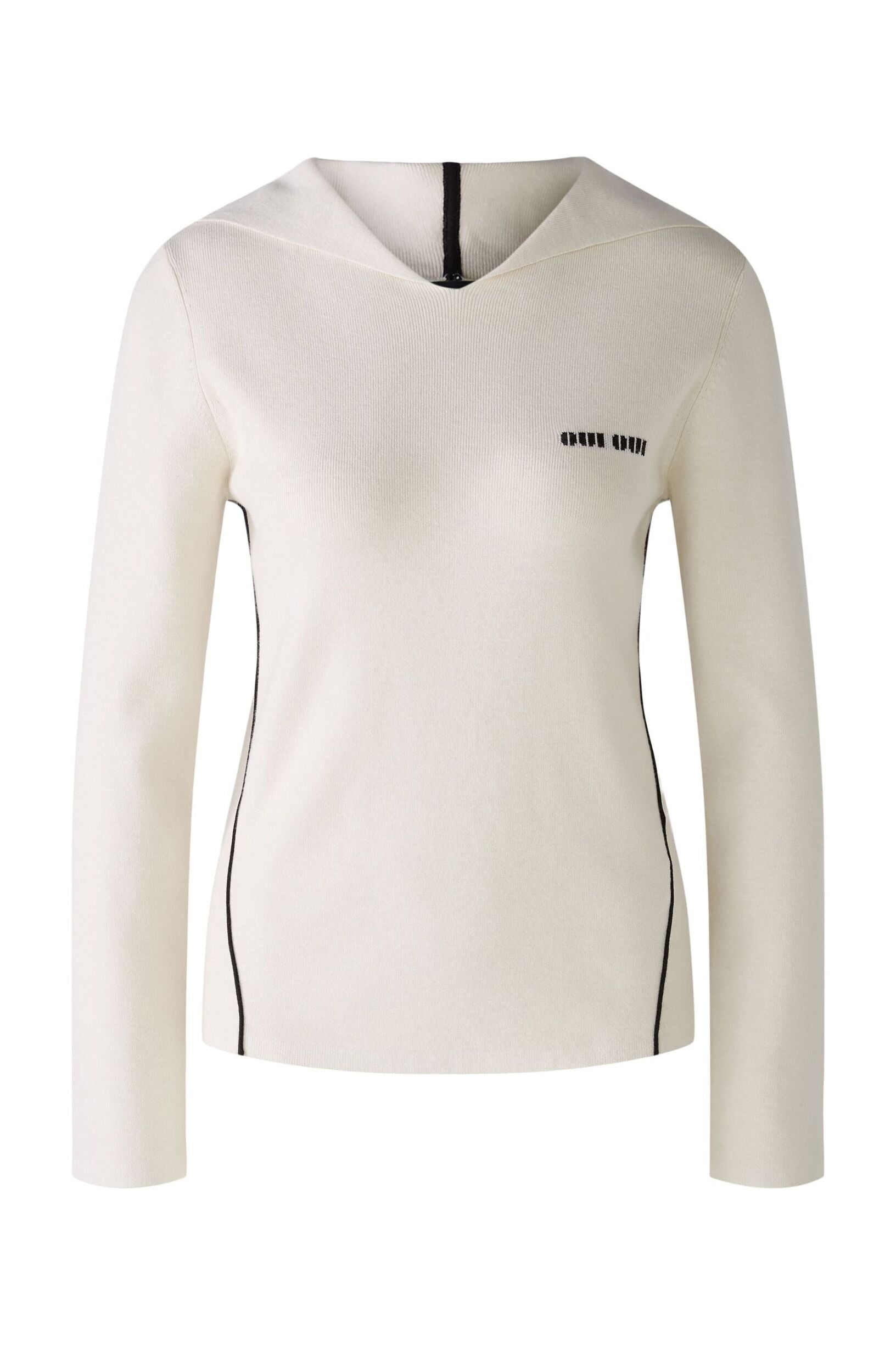 Sehr weiche, schmusige Viskosemischung glatt gestrickt Schmal geschnitten, reguläre Länge Angestrickte Kapuze mit kleinem V-Ausschnitt Vorverlegte Seitennähte mit wertigen Minderungen und kontrastfarbener Rollkante Logo ist als Intarsie eingestrickt * Länge bei Größe 36: 58cm
