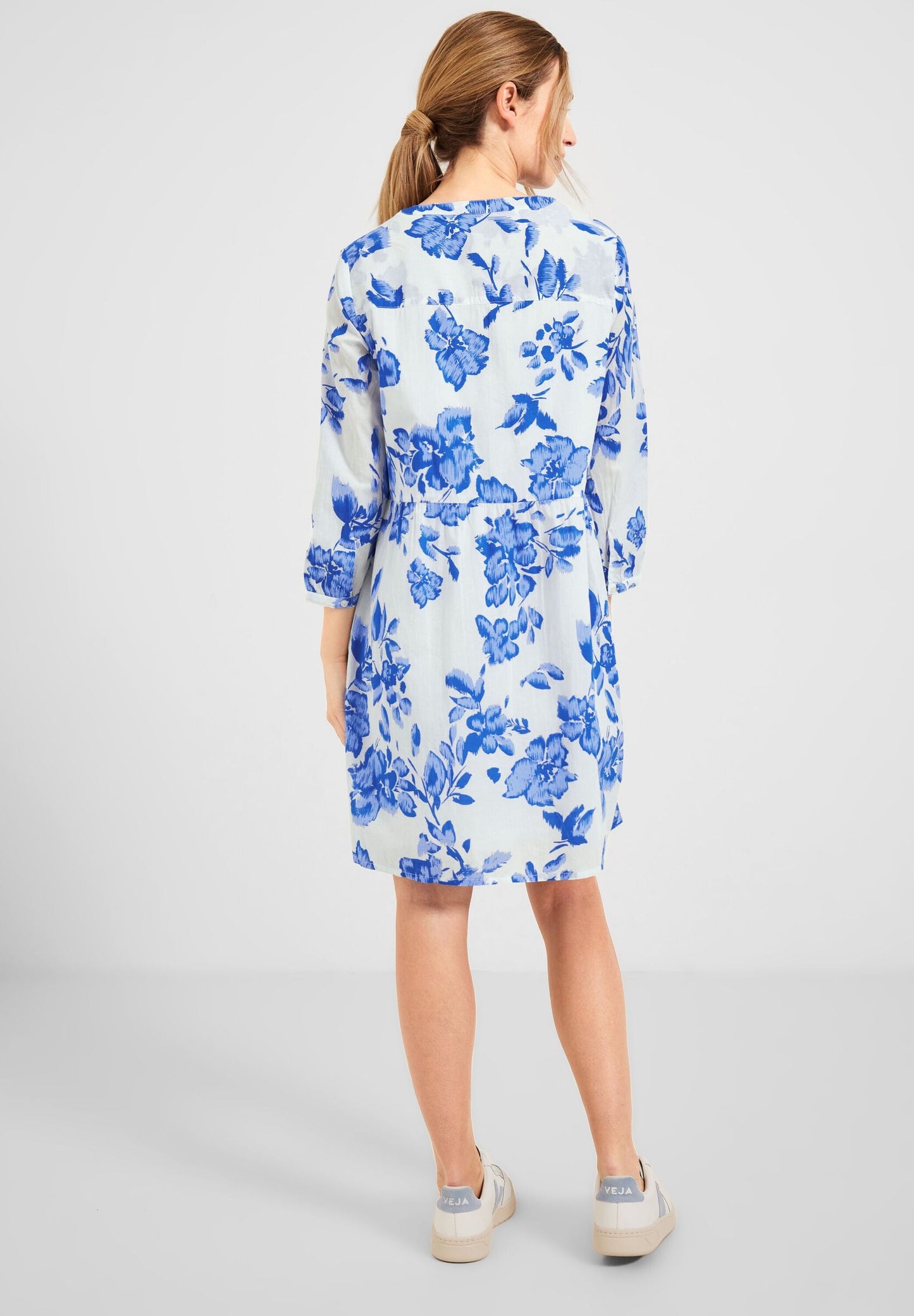 Wir blühen auf! Feminines Kleid von CECIL in angenehmer Baumwolle und mit luftigen 3/4 Ärmeln. Mit geschlitztem Rundhalsausschnitt setzt es auf einen lässigen Fit. Blickfang ist der florale Print, der dem legeren Dress einen sommerlichen Touch gibt.