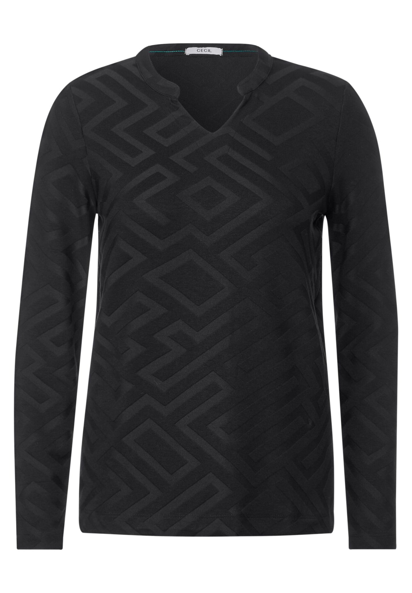 Stilvoller Chic für jede Gelegenheit! Das CECIL Langarmshirt mit geschlitztem Ausschnitt aus einem weichen Viskosemix ist ein hochwertiges Damenshirt mit einem Jacquard-Muster, das eine feine 3D-Optik verleiht. Dieses Shirt ist nicht nur angenehm zu tragen, sondern auch ein echter Blickfang. Egal, ob du es für besondere Anlässe oder den Alltag wählst, dieses Shirt verleiht deinem Outfit eine elegante Note, die immer gut ankommt.