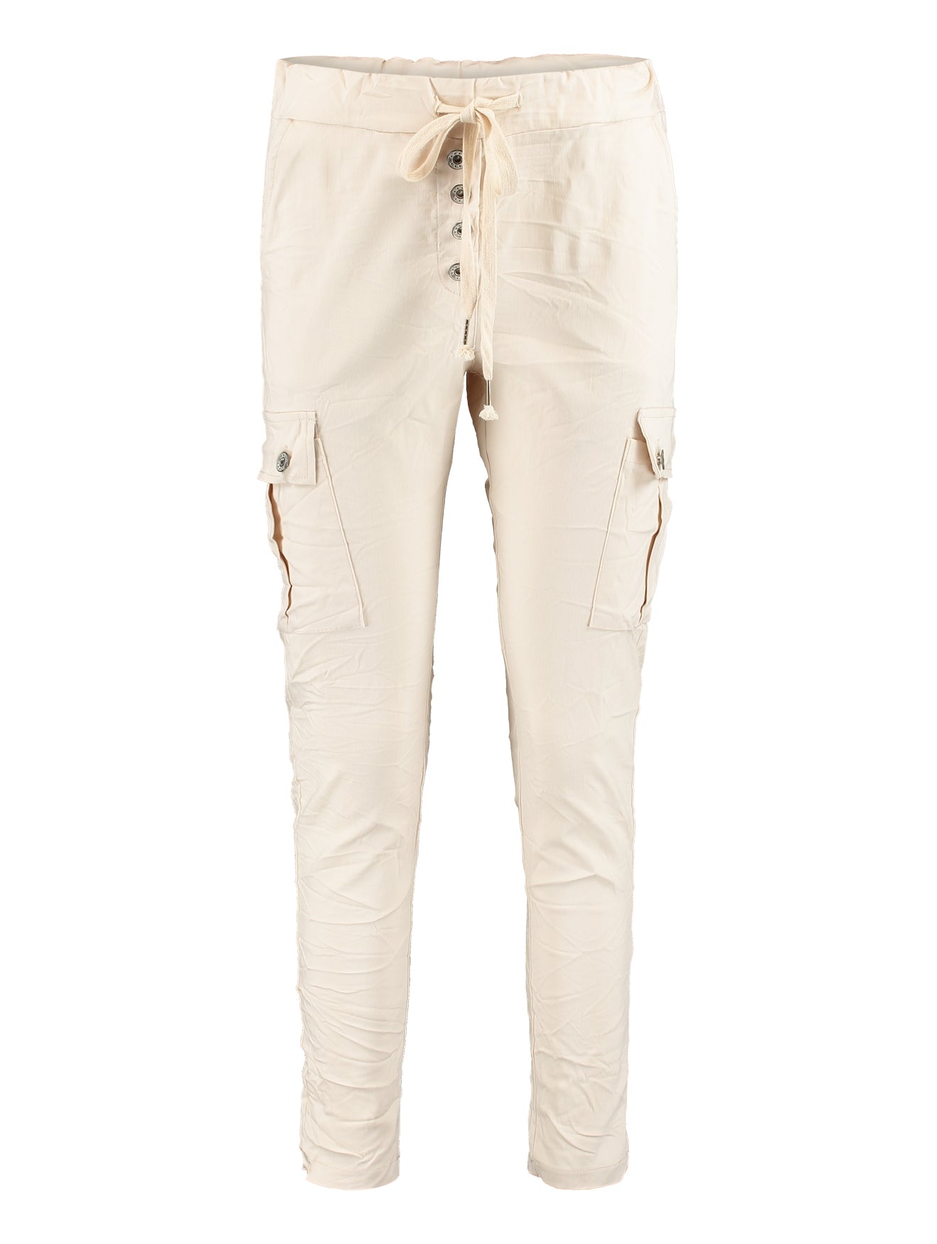 Cargohose aus einer stretchiger Viskosemischung mit elastischem Bund und Kordelzug. Knopfdetails vorne.77 % Viskose, 20 % Nylon, 3 % Elasthan