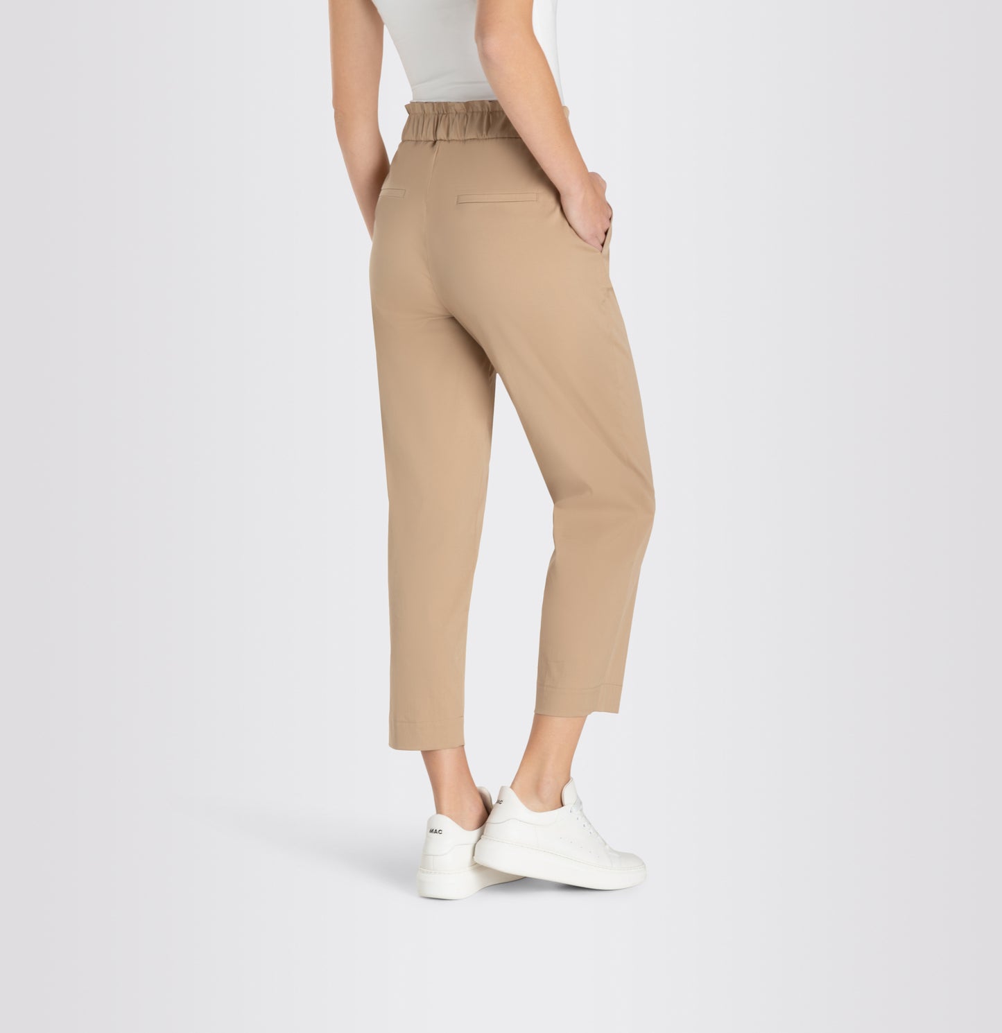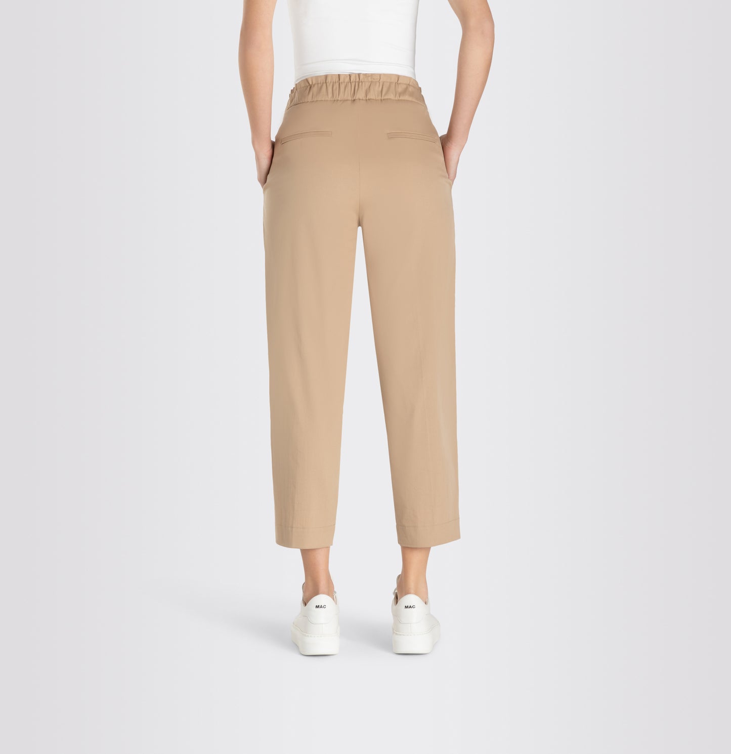 Relaxed Fit schmal zulaufendes Bein verkürzte Länge Chino normale Leibhöhe elastischer Bund Jump-In Modell dezente Kräuselung am Bund seitliche Eingrifftaschen vorne Paspeltaschen hinten extrafeine Baumwoll-Qualität mit Paper Touch elastischer, reißfester Materialmix moderne Crinkle-Optik hoher Tragekomfort leicht im Gewicht kühler, rascheliger Griff über Better Cotton gesourcte Baumwolle Das Model ist 1,75m groß und trägt die MAC Hosengröße 36 Fußweite bei Größe 36: 36cm76% Baumwolle, 21% Polyamid, 3% Elasthan