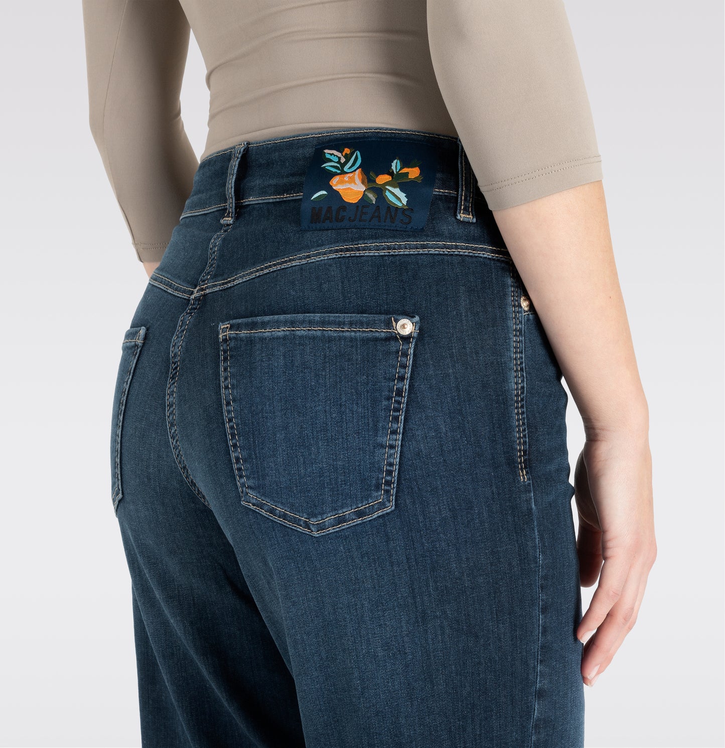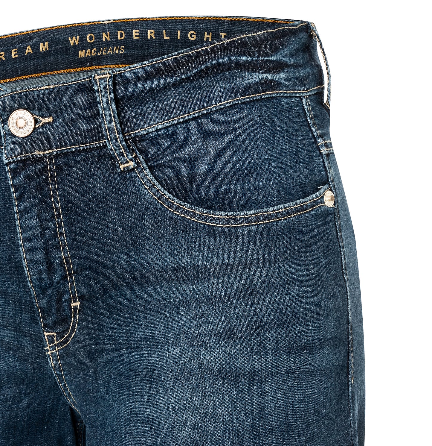 Straight Fit Slim Leg gerades, schmales Bein verkürzte Länge normale Leibhöhe bequeme Taille Five Pocket Zipper am Saum DREAM Wonder Light Denim hochelastischer Denim mit Modal sehr leichte Qualität sehr weich im Griff formender Shaping-Effekt hervorragendes Rücksprung-Verhalten authentische Vintage-Optik hoher Tragekomfort über Better Cotton gesourcte Baumwolle Das Model ist 1,75m groß und trägt die MAC Hosengröße 34 Fußweite bei Größe 36: 29cm75 % Baumwolle, 12 % Modal, 9 % Polyester, 4 % Elasthan