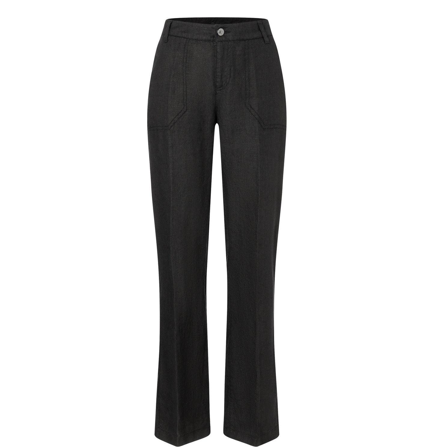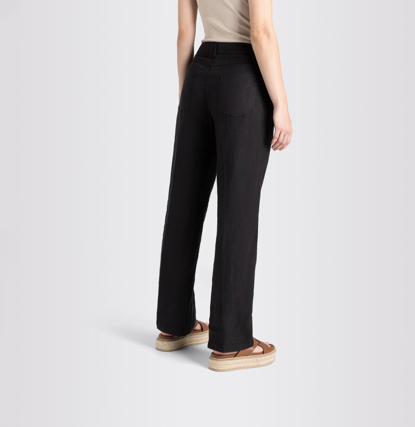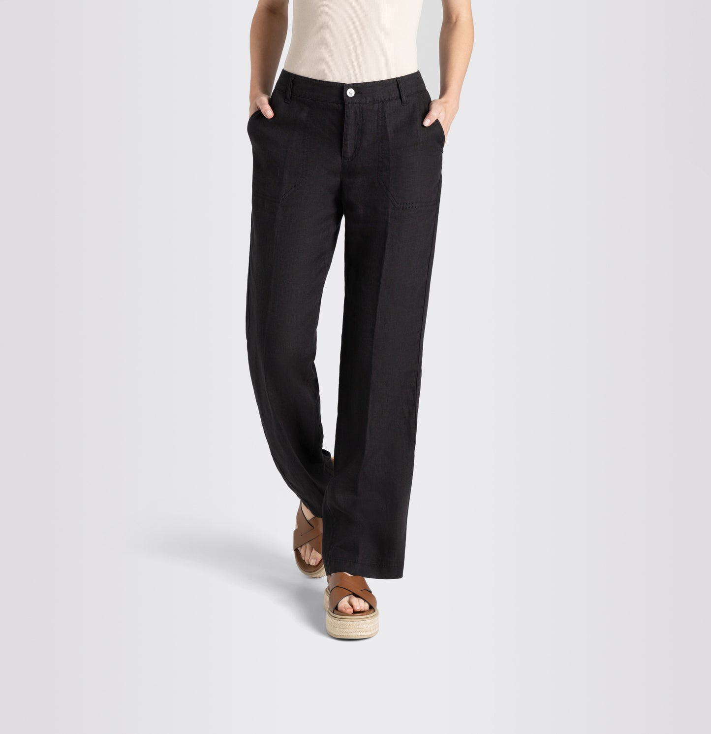 Relaxed Fit weites, gerades Bein normale Leibhöhe bequeme Taille seitliche Eingrifftaschen vorne aufgesetzte Taschen hinten 100% Leinen sehr hochwertige, hautfreundliche Sommer-Qualität hoher Tragekomfort temperaturausgleichend sehr angenehm und kühl auf der Haut langlebige Qualität Das Model ist 1,75m groß und trägt die MAC Hosengröße 36 Fußweite bei Größe 36: 48cm100% Leinen