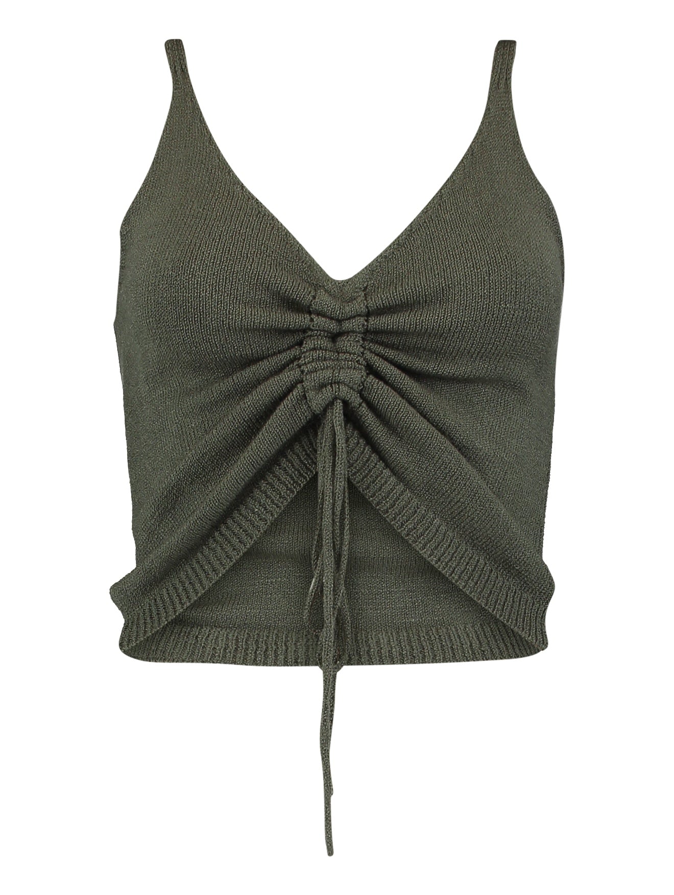 Gestricktes Trägertop mit frontaler Raffung88% Polyacryl, 12% Elasthan