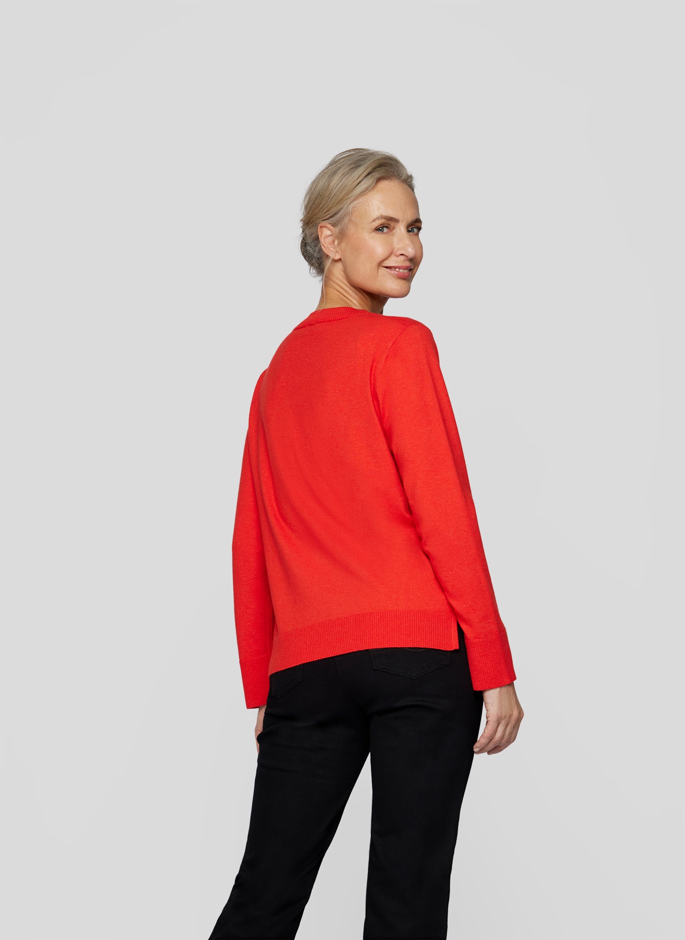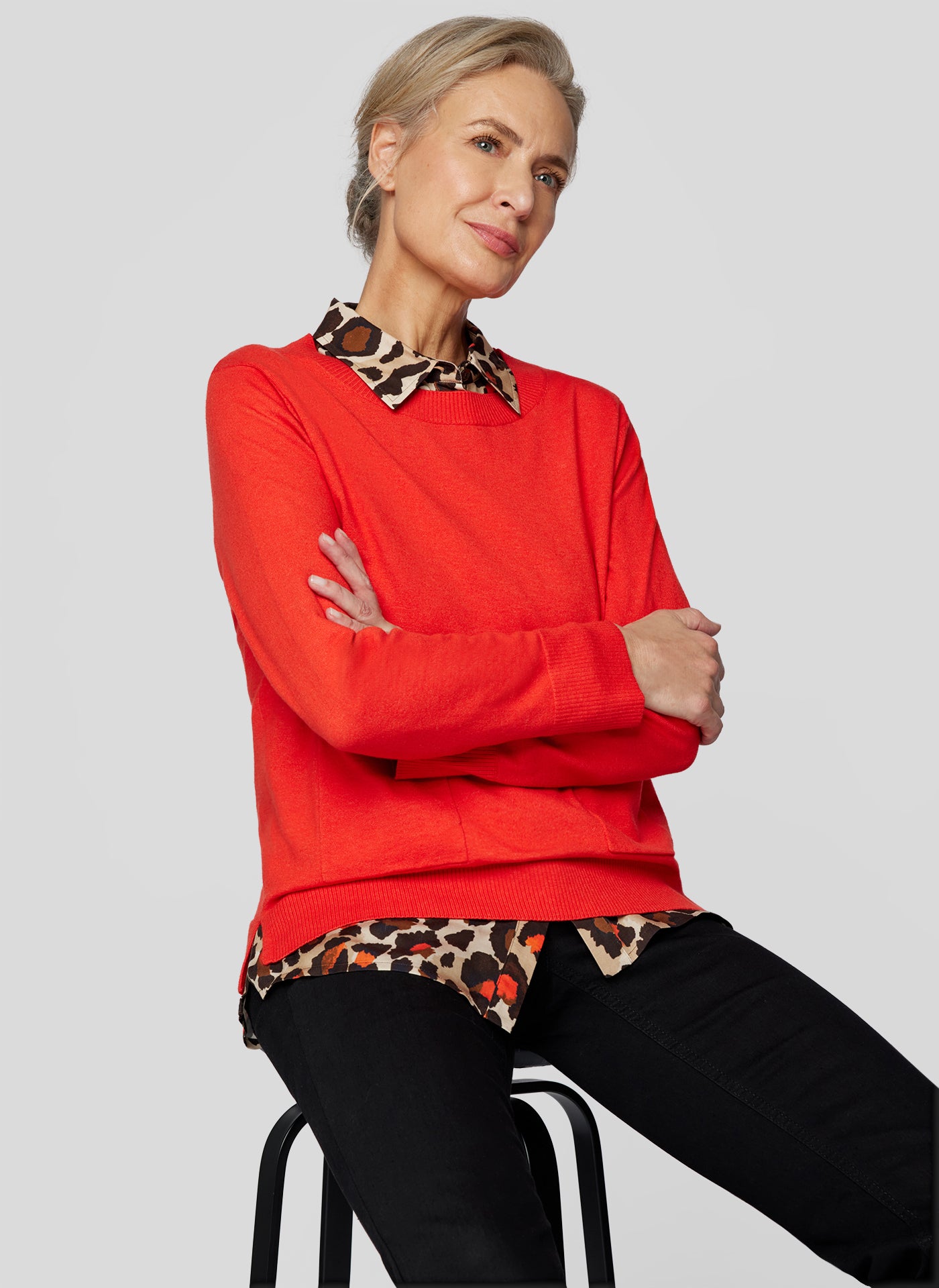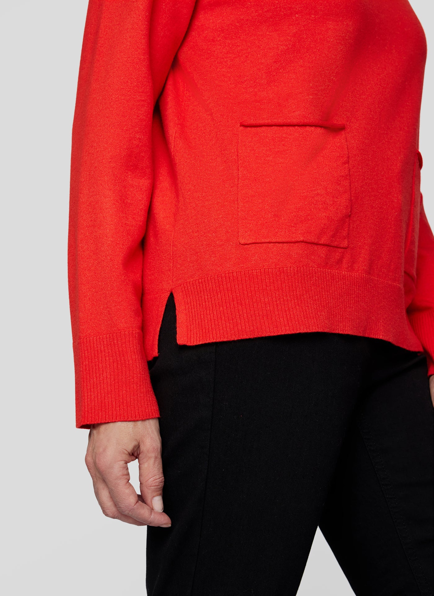 Der unifarbene Rundhals-Pullover in Orange oder Petrol besteht aus einer hochwertigen Mischung von 50% Polyester, 30% Viskose und 20% Polyamid, die für ein angenehmes Tragegefühl sorgt. Mit seinem geraden Schnitt und den langen Ärmeln ist er ideal für kühlere Herbsttage. Die aufgesetzten Taschen setzen dabei einen kleinen stylishen Akzent. Kombinieren Sie diesen vielseitigen Pullover entspannt mit Ihren Lieblingshosen oder -Röcken für einen stilvollen Look.50 % Polyester, 30 % Viskose, 20 % Polyamid