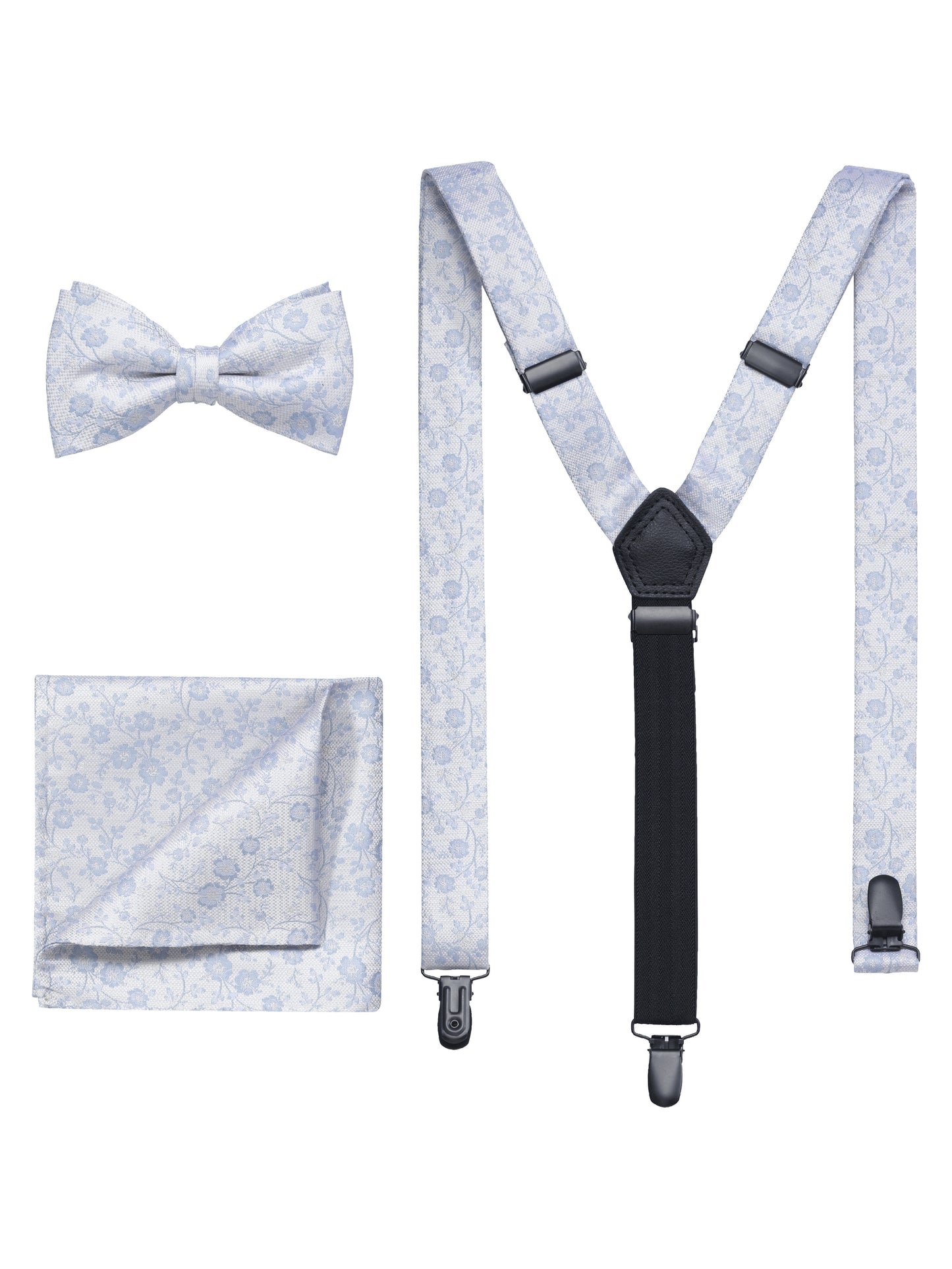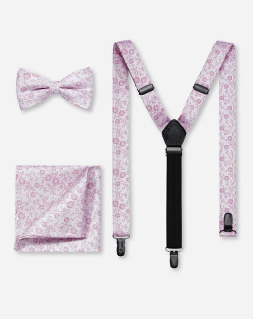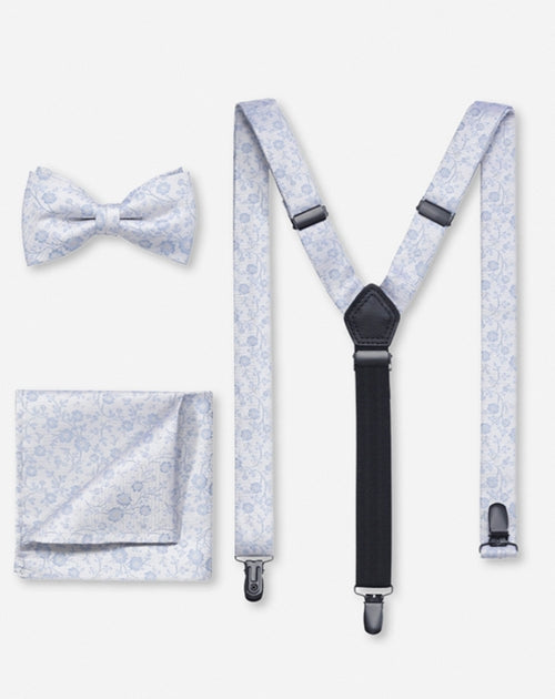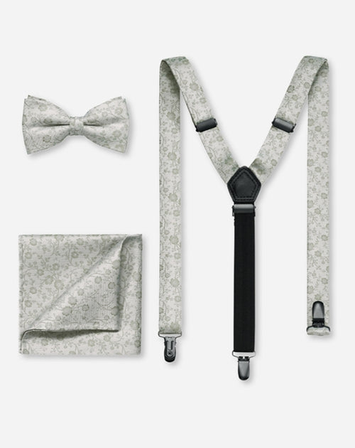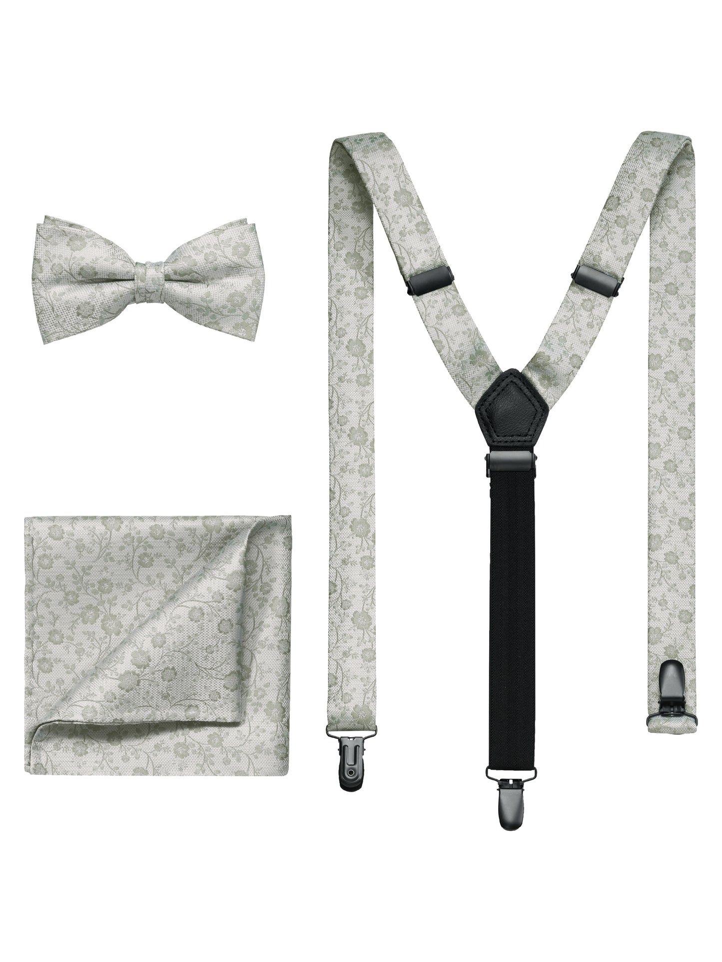 Ein stilvolle Arrangement. Das individuelle OLYMP Accessoire-Set bestehend aus Fliege, Einstecktuch und Hosenträgern ziert ein hübsches Blumenmotiv. Das Einstecktuch überzeugt mit hochwertigen handrollierten Kanten. Die Fliege ist einsatzbereit vorgebunden. Elegante Y-Hosenträger mit kräftigem Ledersteg und glänzenden Clips vollenden das beeindruckende Outfit.Hosenträger: 95% Seide/ 3% Polyester/ 2% Leder, Fliege: 100% Seide, Einstecktuch: 100% Seide
