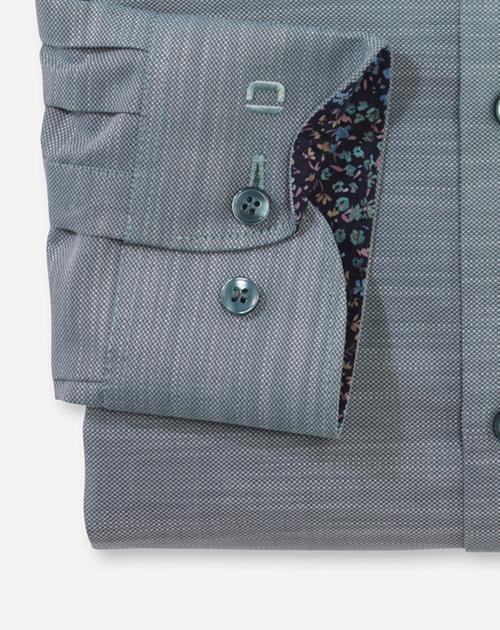 Die körperbetonte Silhouette ist das erste Erkennungszeichen eines OLYMP Level Five Businesshemds. Der fein strukturierte, dehnbare Comfort Stretch aus Baumwolle- und dynamischen Elastolefin-Garnen sorgt für Formstabilität und hautsympathischen Tragekomfort sowie extra leichtes Bügeln. Ein smarter Modern Kent vollendet den Look, modisch unterstrichen von kontrastierenden Flower-Print-Details. Charmant in Grün.