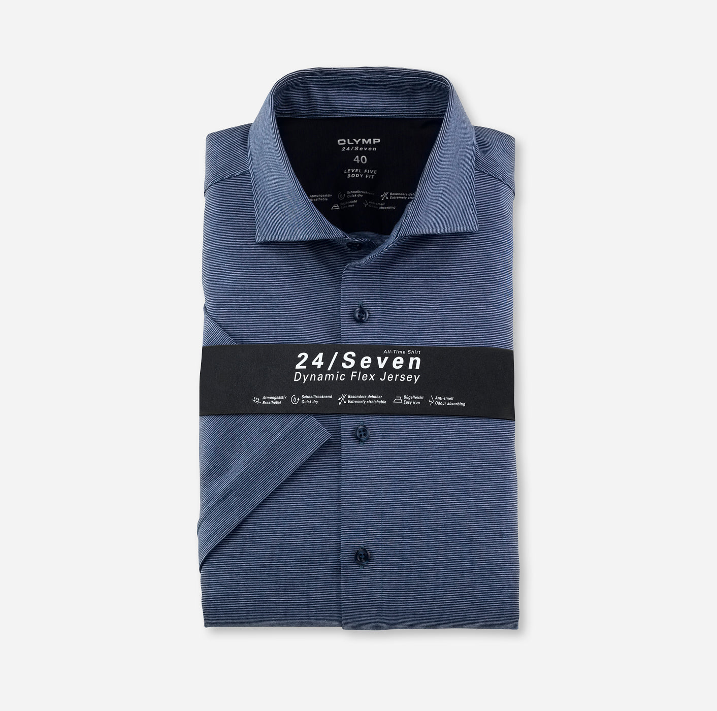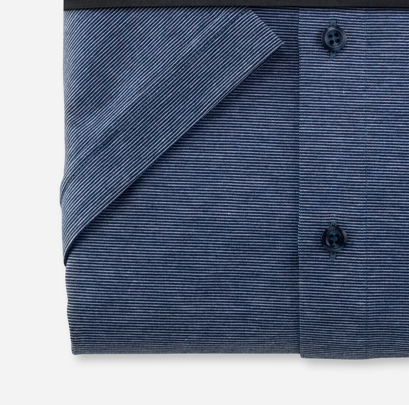 Als idealer Begleiter an wärmeren Tagen geht dieses kurzärmlige 24/Seven der Linie OLYMP Level Five body fit ins Rennen. Der hoch elastische Dynamic Flex Jersey besteht aus einem innovativen Baumwoll-TENCEL™-Blend und begeistert durch weiche, leichte Qualität und angenehm kühlen Griff. Die klassische Optik in sehr feiner zweifarbiger Garnführung lässt sich wunderbar in den Business-Alltag integrieren, macht aber auch im Afterwork eine überzeugende Figur. Ausgestattet mit zeitlosem Kent-Kragen.56% Lyocell, 37% Baumwolle, 7% Elasthan