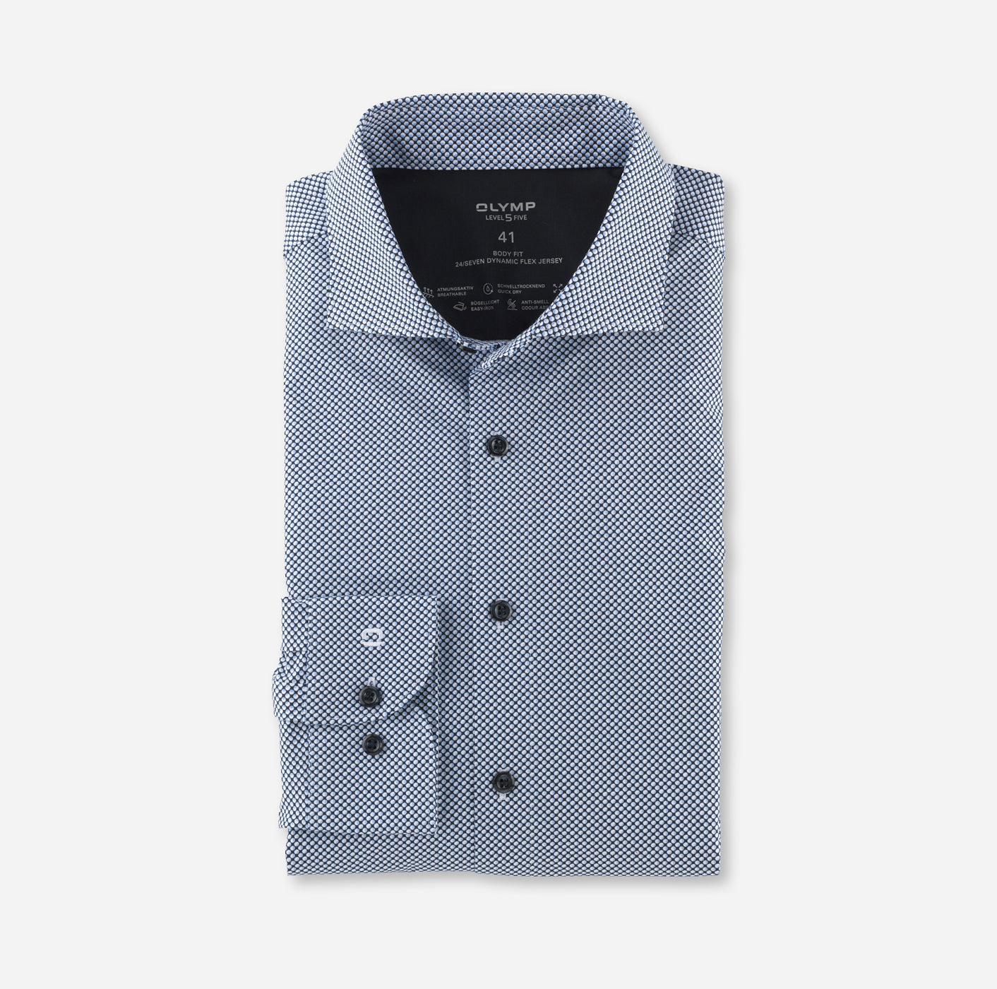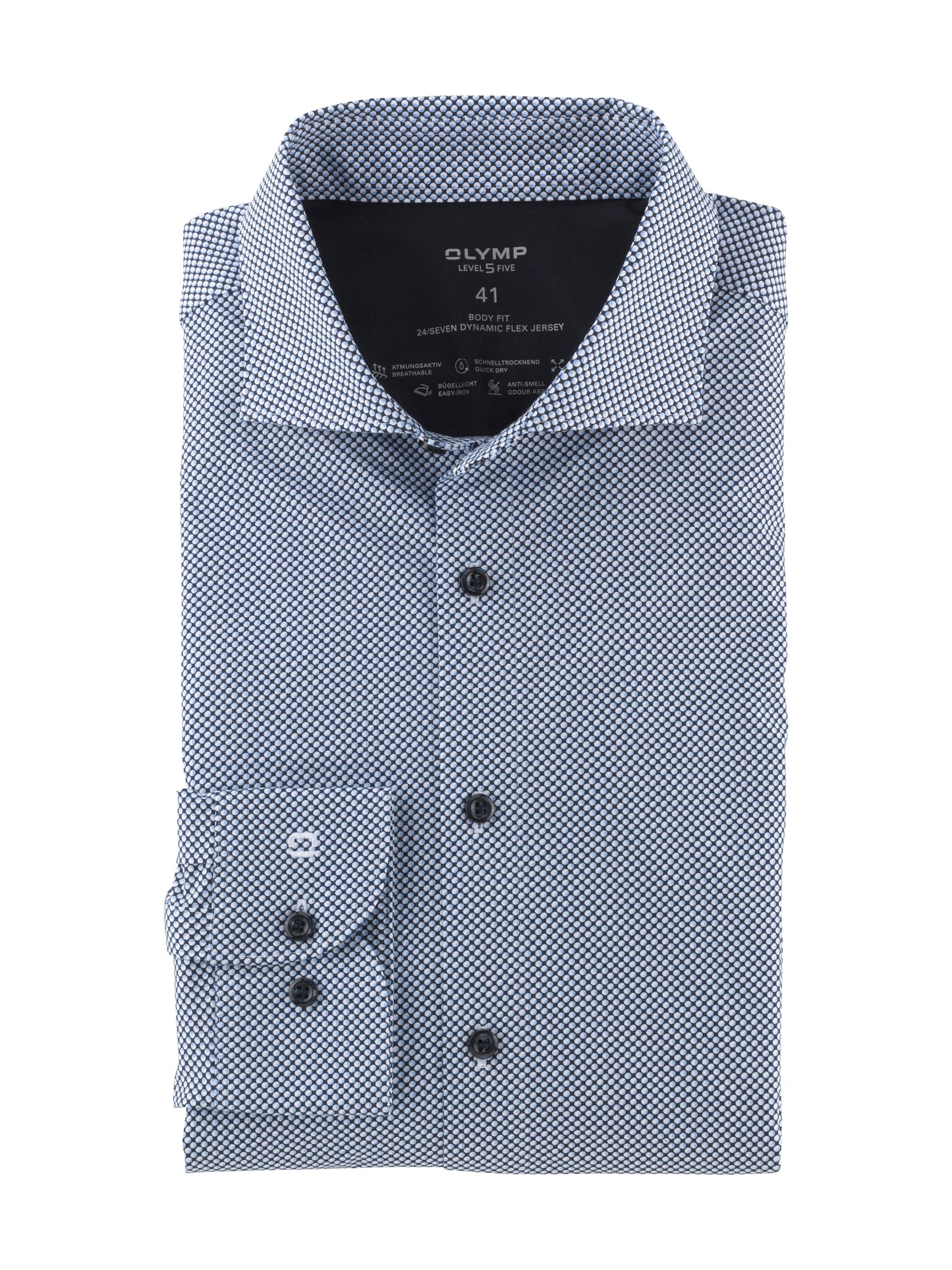Flache Hierarchien und moderner Lifestyle lassen modische Lässigkeit auch im Office zu Wort und Bild kommen. Mit wirkungsvollem Print-Dessin in digitaler Pixelschärfe und innovativen Farbkompositionen präsentiert sich dieses OLYMP Level Five 24/Seven body fit. Der klassische Kent verleiht der körperbetonten Linie die seriöse Note. Der glatte Dynamic-Flex-Jersey aus Baumwoll- und Elasthangarnen wirkt formstabil, cool und leicht auf der Haut, ist nachhaltig produziert sowie pflege- und bügelleicht. Perfekt für die junge Businessgeneration.92% Baumwolle, 8% Elasthan
