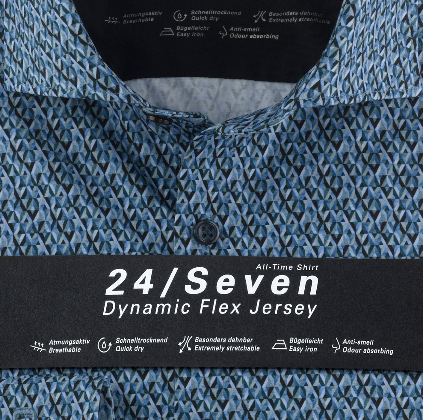 So geht Office-Wear heute! Das Jersey-Konzept 24/Seven richtet sich bewusst an ein dynamisches Klientel voller Taten- und Bewegungsdrang. Das neue Modell der Linie OLYMP Level Five kombiniert einen trendigen Digitalprint mit klassischen Schnittmerkmalen und schafft so einen betont modernen Business-Look. Hochwertige Baumwollqualität auf nachhaltigem GREEN CHOICE Niveau und ein hoher Stretch-Anteil formieren sich zu einem super flexiblen All-Time-Jersey, geschnitten im schlanken Body Fit und mit zeitlosem Kent. Passt natürlich auch in der Freizeit.92% Baumwolle, 8% Elasthan