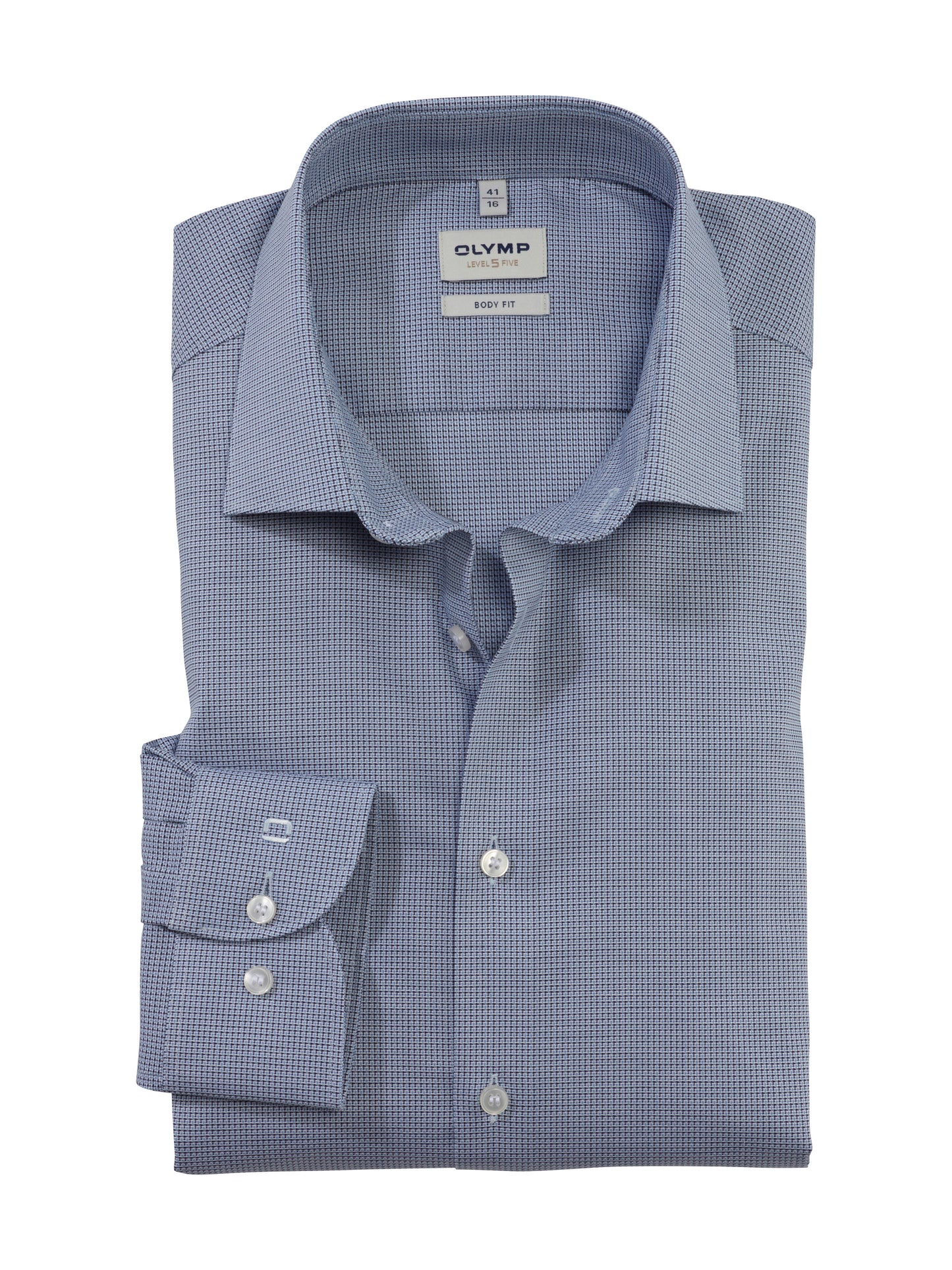 Feines Strukturgewebe in Bleu und eine maskulin taillierte Body-Fit-Silhouette: Dieses OLYMP Level Five wurde aus leichten Baumwollgarnen mit geringem Elastolefin-Anteil verarbeitet. Der formstabile Comfort Stretch punktet atmungsaktiv, hautsympathisch und besonders bügelleicht. Der angesagte New York Kent unterstreicht den sportaffinen Look.97 % Baumwolle, 3 % Elastolefin