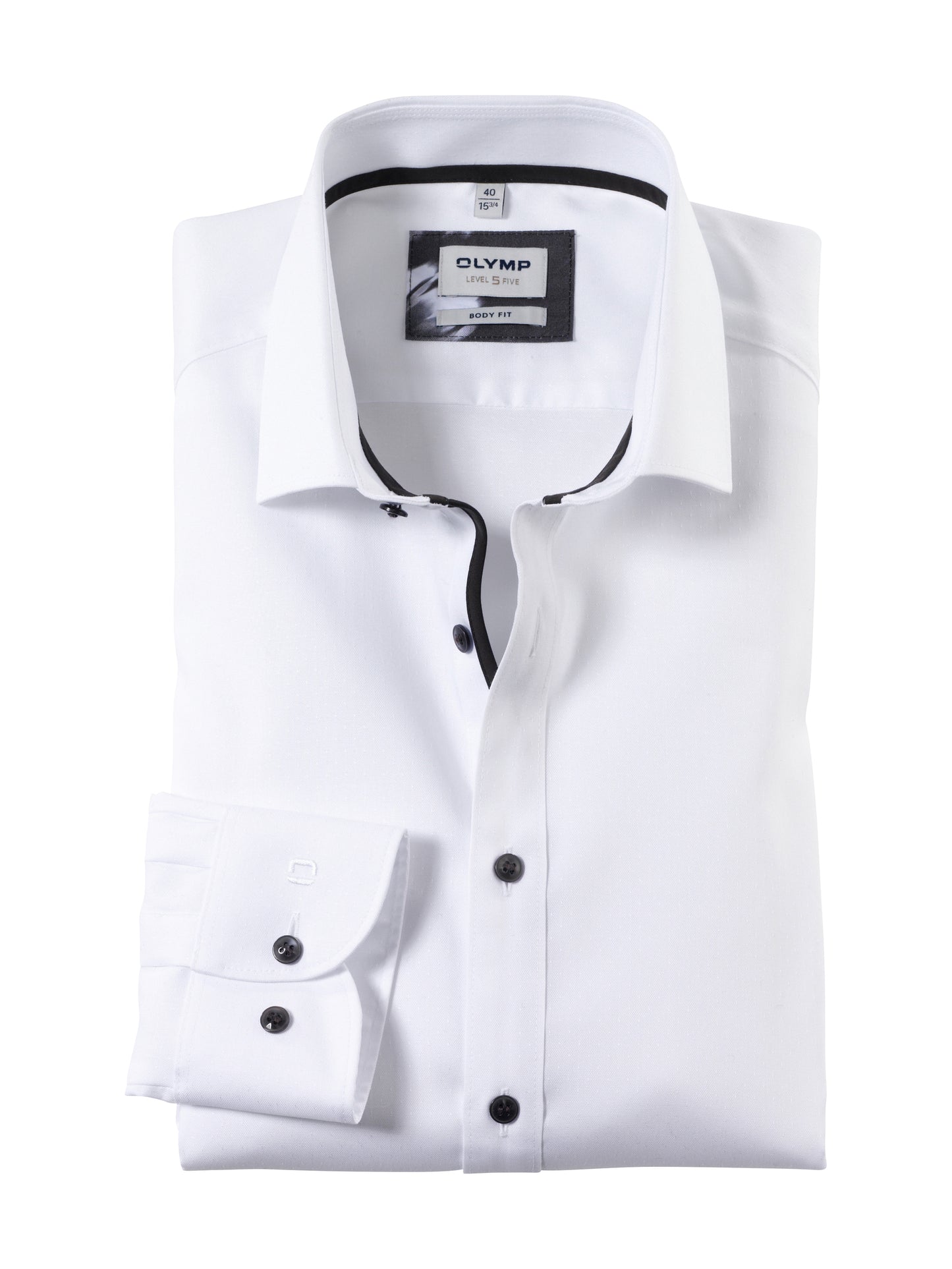 Solvent und modern zugleich erscheint der weltgewandte Businessmann in diesem OLYMP Level Five in Weiß. Das hochwertige Herrenhemd besticht durch frühlingshaft leichte Baumwolle mit edel satinierten Micro-Dots, verarbeitet in trageangenehmer OLYMP Comfort-Stretch-Qualität. Dank der matt schimmernden Textur wirkt es vollendet elegant und hält auch gehobenen Anlässen souverän stand. Der körpernahe Body Fit ist gezielt auf die junge Business-Generation ausgerichtet. Farblich abgesetzte Knöpfe und ein modischer Modern Kent runden das Profil ab.97% Baumwolle, 3% Elastolefin