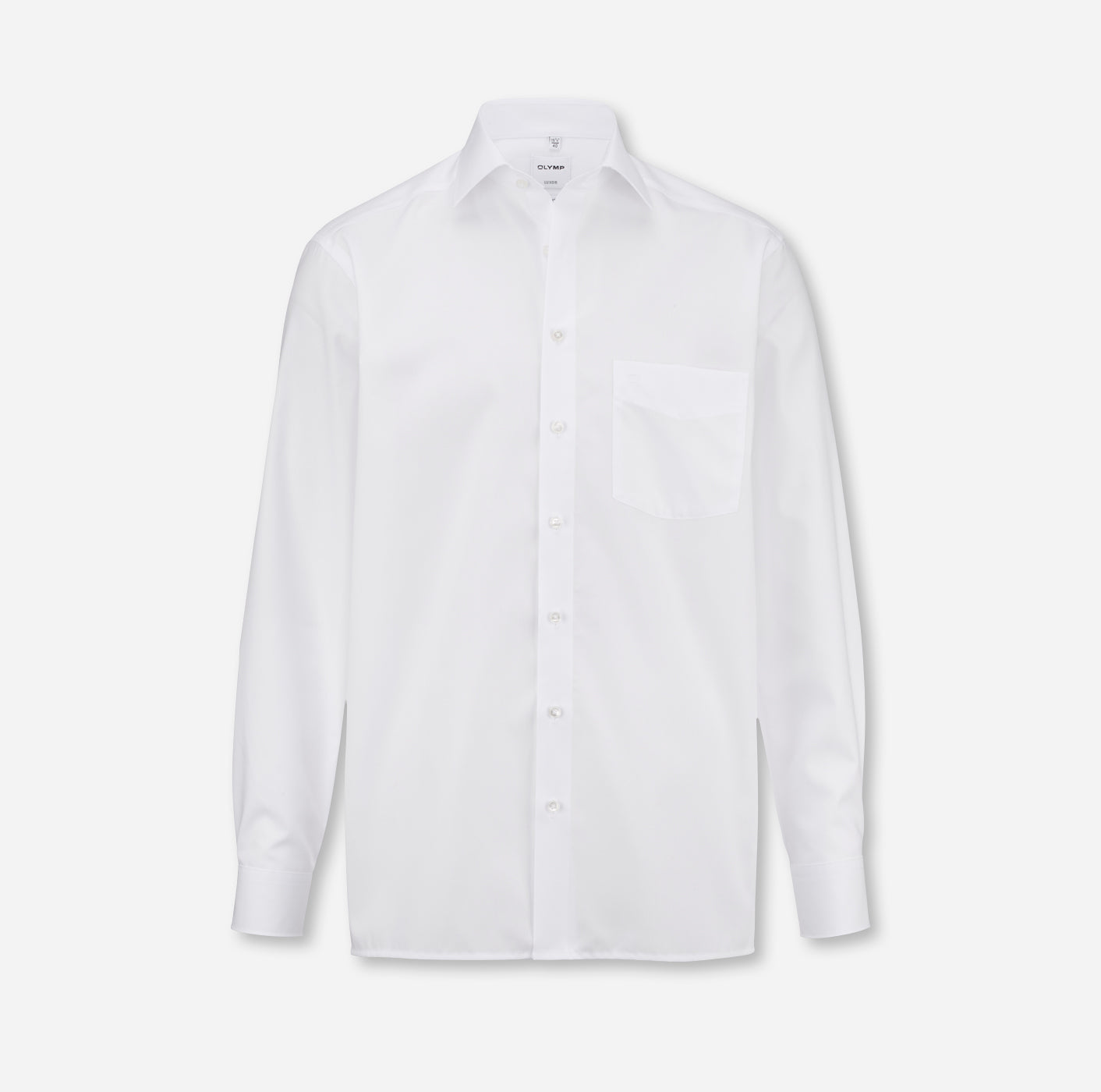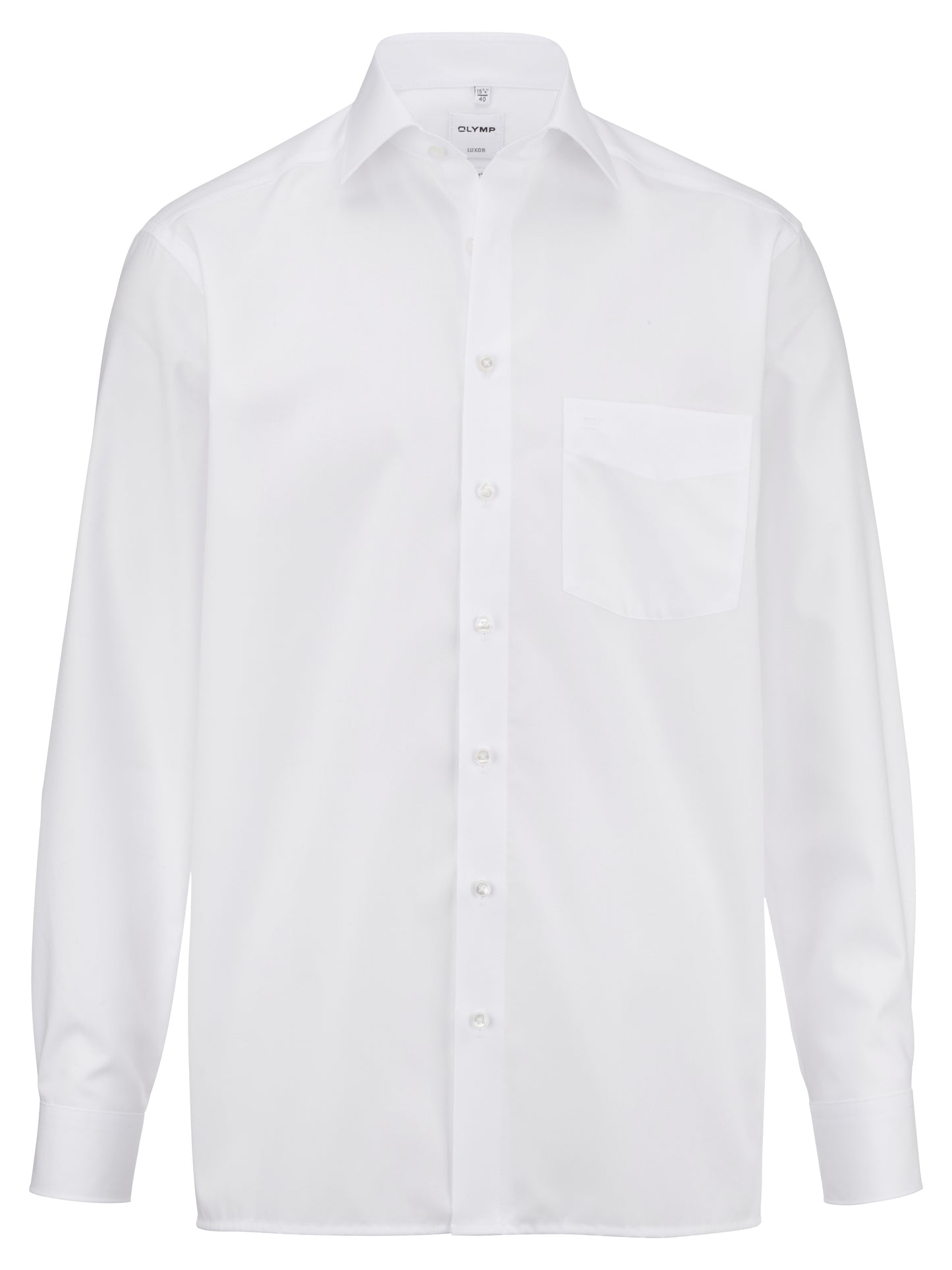 Mehr Souveränität durch faltenfreien Auftritt: Das exklusive Businesshemd OLYMP Luxor comfort fit mit grenzenloser bügel- und Knitterfreiheit. Auch bei hitzigen Debatten angenehmer Tragekomfort dank atmungsaktiver und hautsympathischer Stoffe. Der unifarbene Oberstoff in Weiß mit elegantem New-Kent-Kragen sowie verstellbaren Kombimanschetten machen dieses Hemd vielseitig kombinierbar und zeitlos schick. Business im OLYMP.100% Baumwolle