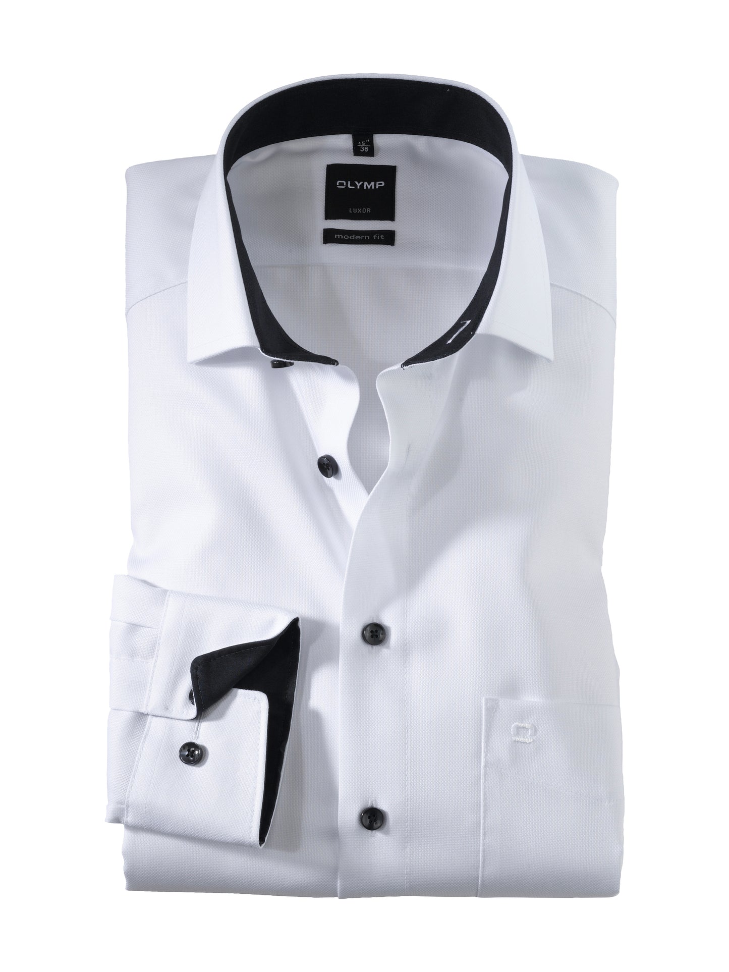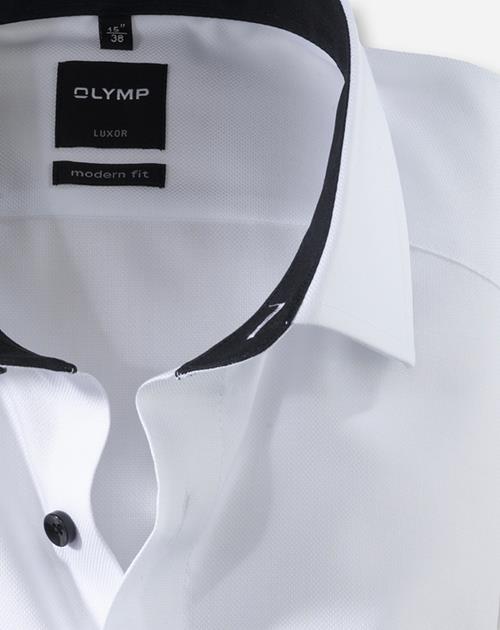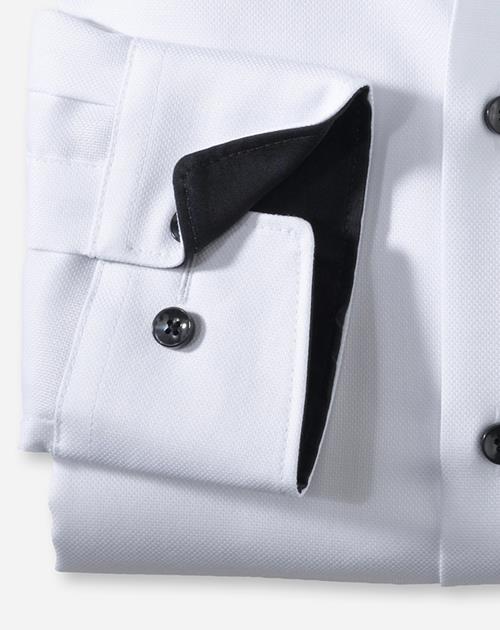 Einfach waschen, trocknen, anziehen – OLYMP Luxor modern fit bleibt auch ohne Bügeln den ganzen Tag glatt. Das knitter- und bügelfreie Businesshemd aus 100% Baumwolle macht immer eine gute Figur. Der Oberstoffes in Weiß harmoniert mit dem geschmackvoll darauf abgestimmten Kontrastgewebe am Krageninnensteg und den Innenmanschetten in perfekter Art und Weise. Ein eleganter Global-Kent-Kragen und weitenverstellbare Kombimanschetten machen den Style komplett. Der atmungsaktive und hautsympathische Stoff hält jeden Stress aus.100% Baumwolle