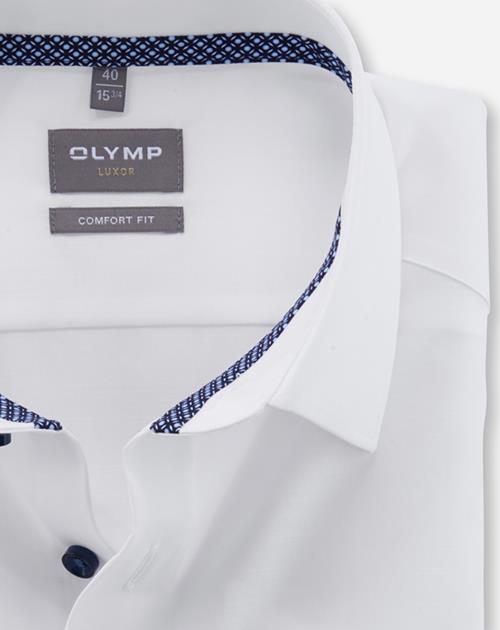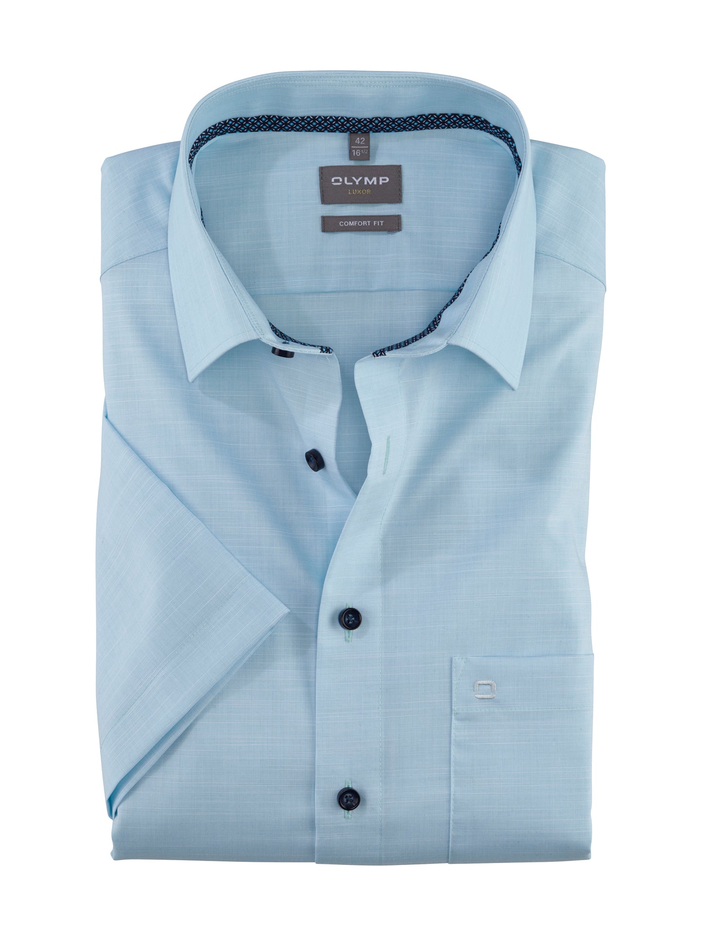 Sommerlich leicht gewebt, der perfekte Begleiter für das dritte Quartal. Das Kurzarmhemd OLYMP Luxor comfort fit aus 100% Green-Choice-Baumwolle mit smartem New-Kent-Kragen und modisch kontrastivem Print-Kontrasten überzeugt bügelleicht, knitterfrei und hautsympathisch. Einfach waschen, trocknen, anziehen – das OLYMP Luxor bleibt den ganzen Tag lang glatt. Die besonders fein strukturierte Textur in Weiß punktet als klassischer Allrounder. Komfortabel geradlinig geschnitten, geschmackvoll inszenierte Details, auch in der Kurzarm-Version ein standesgemäß brillantes Businesshemd.100% Baumwolle