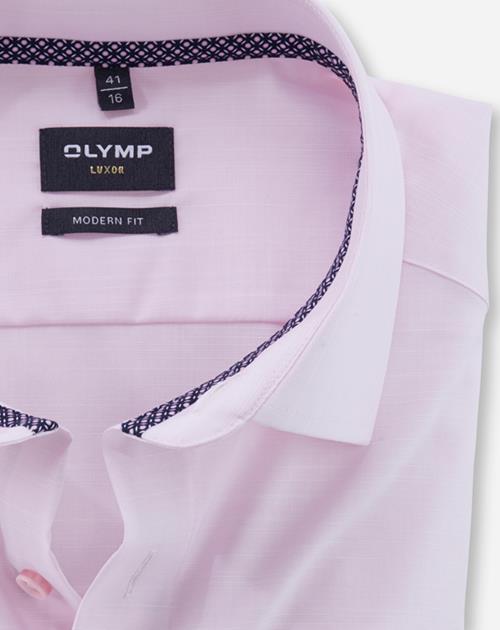 Sommerlich leicht gewebt, der perfekte Begleiter für das dritte Quartal. Das Kurzarmhemd OLYMP Luxor modern fit aus 100% Green-Choice-Baumwolle mit weltoffenem Global-Kent-Kragen und modisch kontrastivem Print-Kontrasten überzeugt bügelleicht, knitterfrei und hautsympathisch. Einfach waschen, trocknen, anziehen – das OLYMP Luxor bleibt den ganzen Tag lang glatt. Die besonders fein strukturierte Textur in Rose punktet als klassischer Allrounder. Attraktiv körpernah geschnitten, geschmackvoll inszenierte Details, auch in der Kurzarm-Version ein standesgemäß brillantes Businesshemd.100% Baumwolle