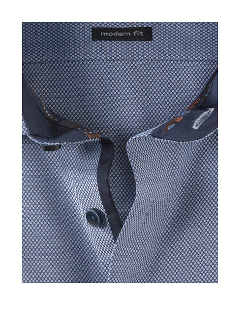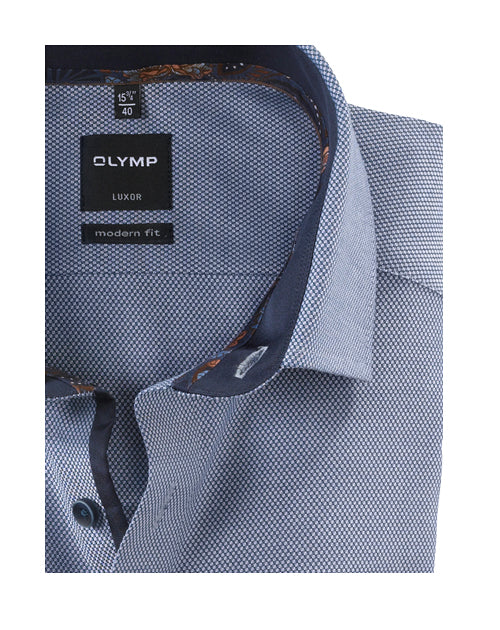 Mehr Souveränität durch faltenfreien Auftritt: Das exklusive Businesshemd der Linie OLYMP Luxor modern fit mit grenzenloser Bügel- und Knitterfreiheit. Auch bei hitzigen Debatten angenehmer Tragekomfort dank atmungsaktiver und hautsympathischer Stoffe. Der Oberstoff mit Schaftmusterung in Marine akzentuiert den Besatz aus Satin und Druck am Krageninnensteg und den Innenmanschetten. Nicht zuletzt machen der Global-Kent-Kragen und weitenverstellbare Kombimanschetten OLYMP Luxor zum idealen Geschäftspartner. Business im OLYMP.100 % Baumwolle