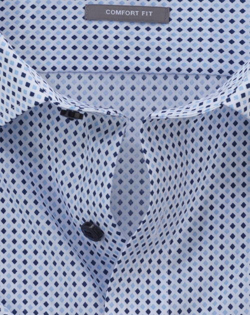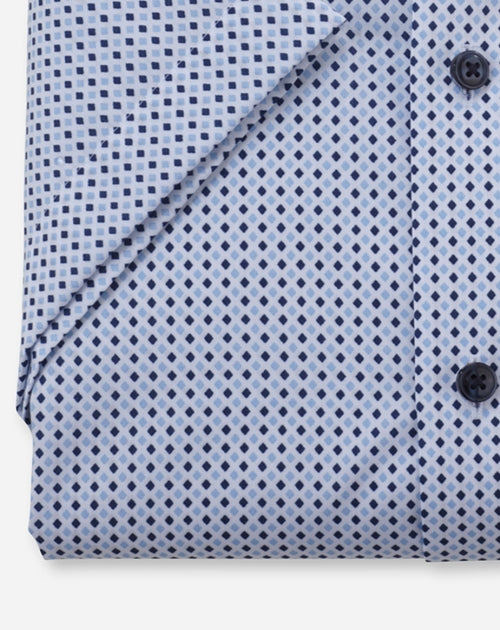 Sympathisches Rauten-Minimal-Dessin, vielseitiger New Kent und sprichwörtlich coole Textur – das komfortabel geschnittene OLYMP Luxor Businesshemd in Kurzarm-Version aus feinem Baumwoll-Popeline sorgt auch bei sommerlichen Temperaturen für hautsympathischen Tragekomfort. Bügel- und knitterfrei.100 % Baumwolle