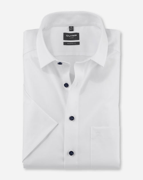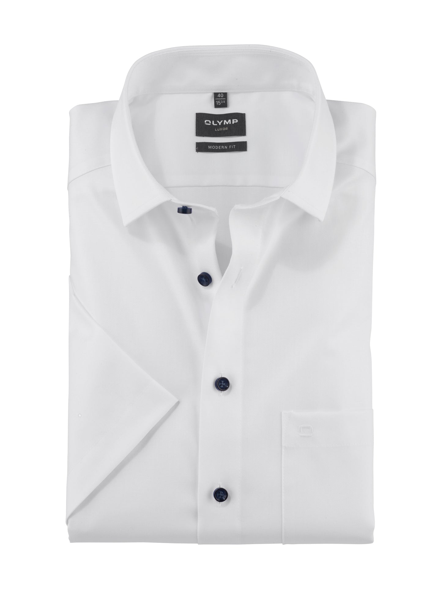 Bewährt im Business. Der fein strukturierte Baumwoll-Twill dieses OLYMP Luxor Kurzarmhemdes in körpernaher Silhouette mit modischem Global Kent ist ein perfekter Allrounder. Hautsympathisch, soft, atmungsaktiv. Bügel- und knitterfrei.100 % Baumwolle