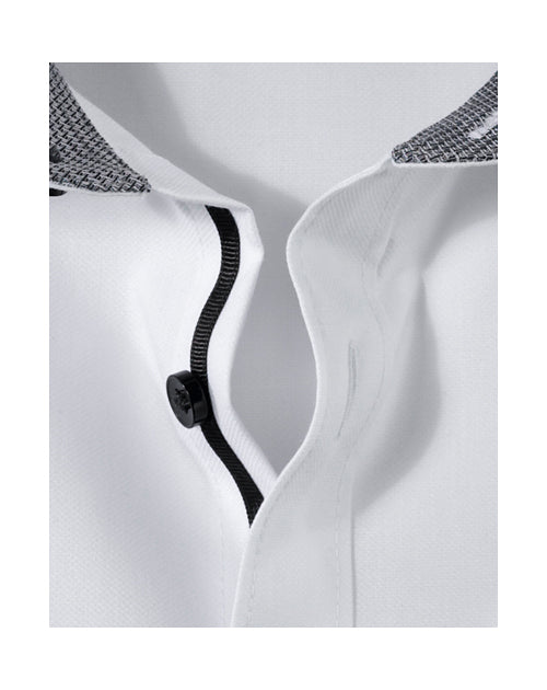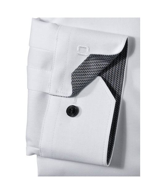 OLYMP No. Six super slim ist das sehr stark taillierte und körpernahe Businesshemd für superschlanke Männer. Die trendige Verjüngung der Silhouette unterstützt die Körperbetonung der sportaffinen Zielgruppe. Die schlanke Hemdenlinie mit elegantem Urban-Kent-Kragen und abgerundeten Manschetten ist außerdem besonders bügelleicht und zertifiziert nach OEKO-TEX® STANDARD 100. Der Oberstoff in Weiß und der Besatz am Krageninnensteg und den Innenmanschetten runden das Gesamtbild ab.97 % Baumwolle, 3 % Elastolefin