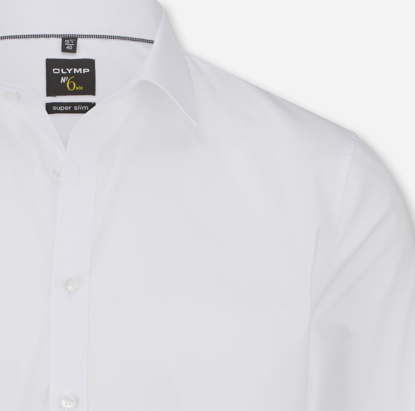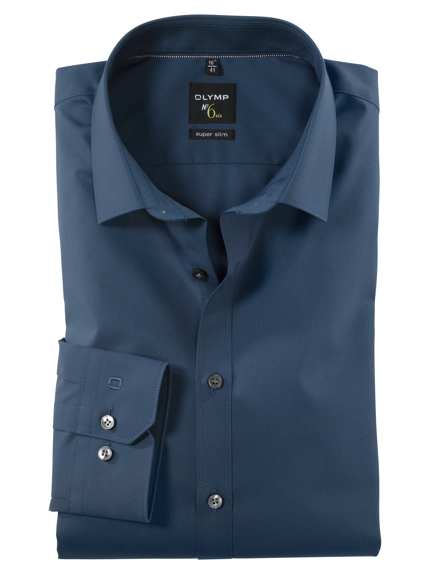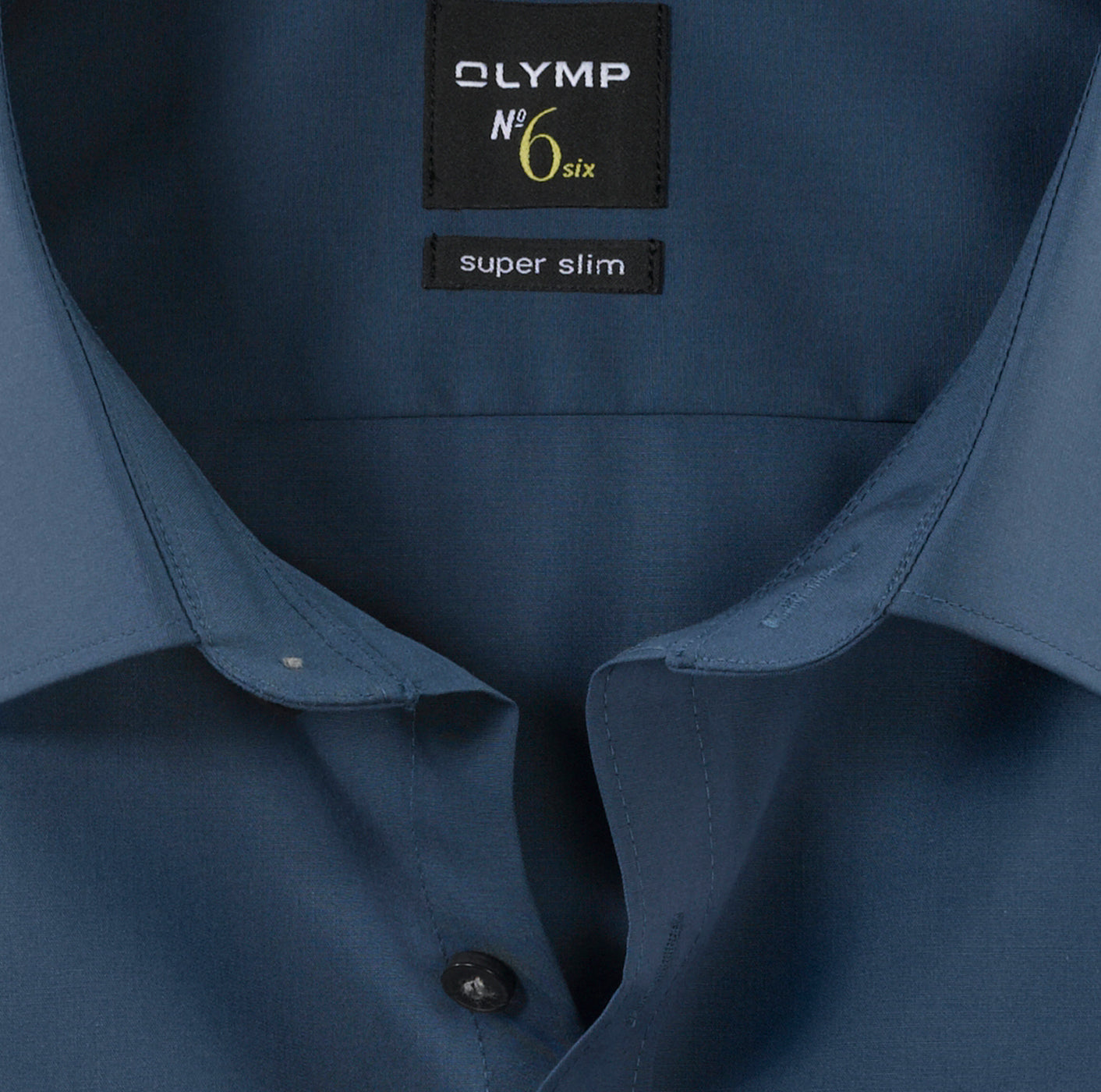 Mit OLYMP No. Six super slim präsentiert der Hemdenspezialist seine neueste Innovation im Business-Segment. Das stark taillierte Hemd überzeugt durch seine körperbetonende Schnittführung und ist damit das perfekte Outfit für den superschlanken Mann. Der modische Urban-Kent-Kragen und die weitenverstellbaren Kombimanschetten unterstreichen das sportliche Profil. Die bügelleichte Beschaffenheit minimiert die ungeliebte Bügelarbeit. Das hochwertige Gewebe aus Comfort Stretch in Rauchblau garantiert trotz Super-slim-Passform grenzenlose Bewegungsfreiheit.97% Baumwolle/ 3% Elastolefin (®XLANCE)