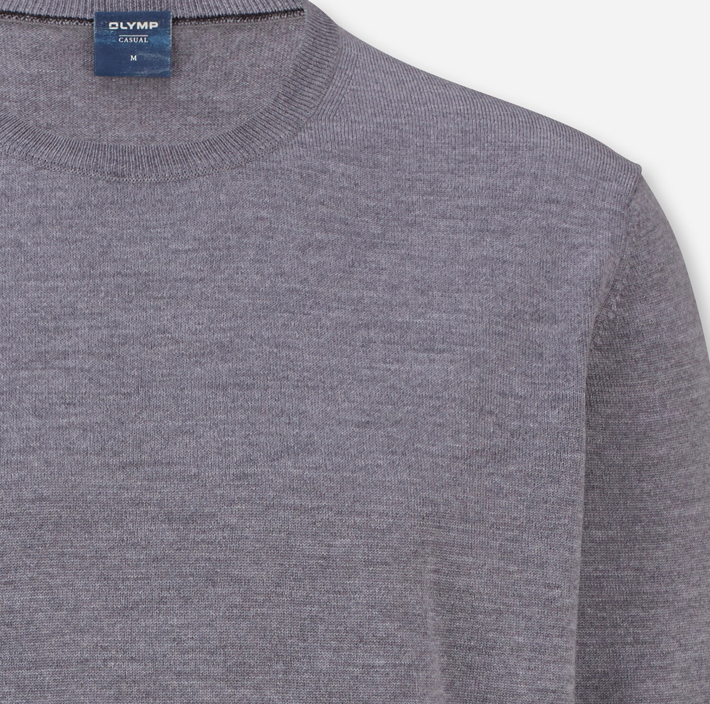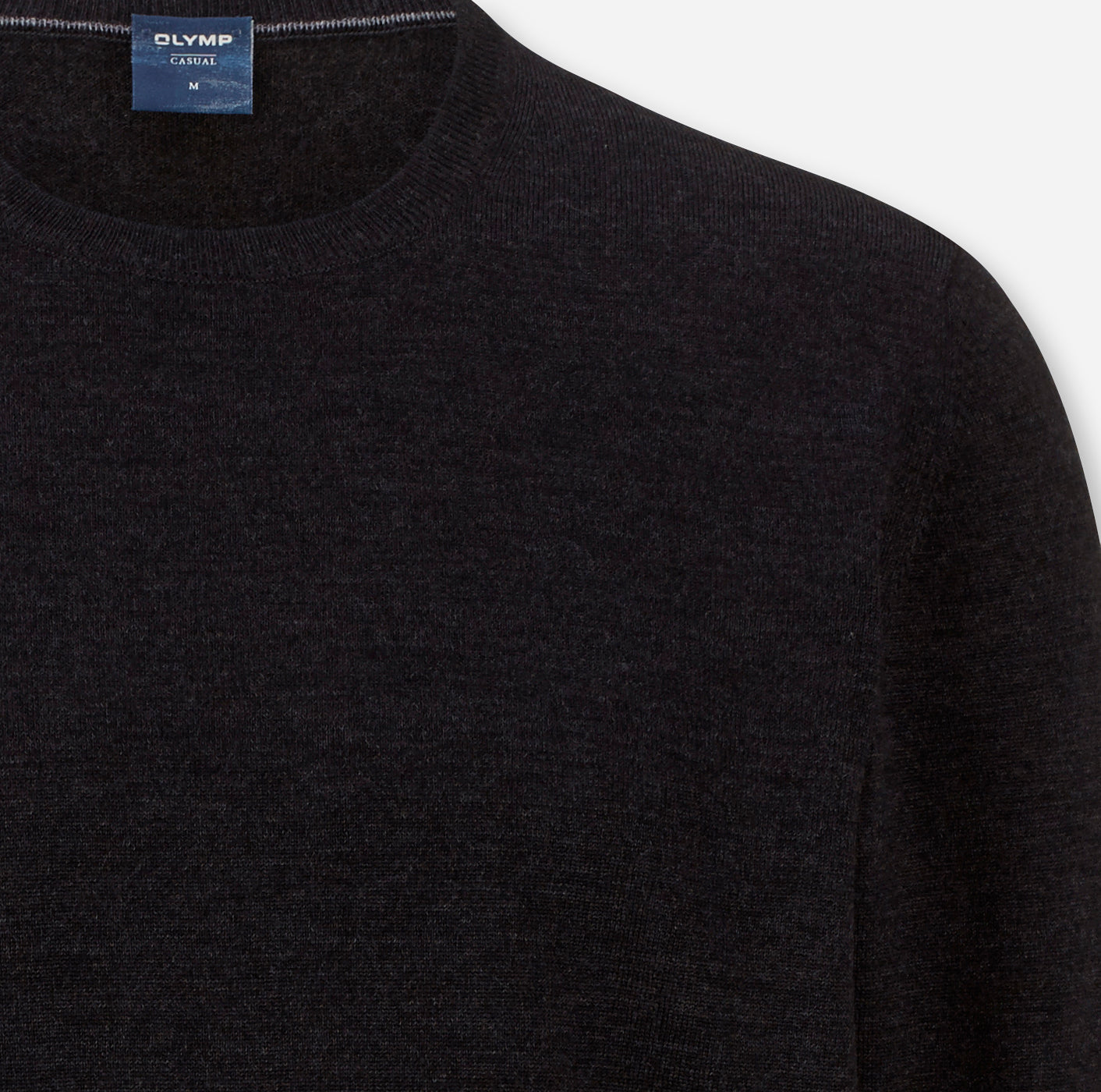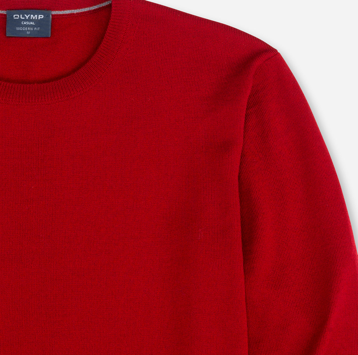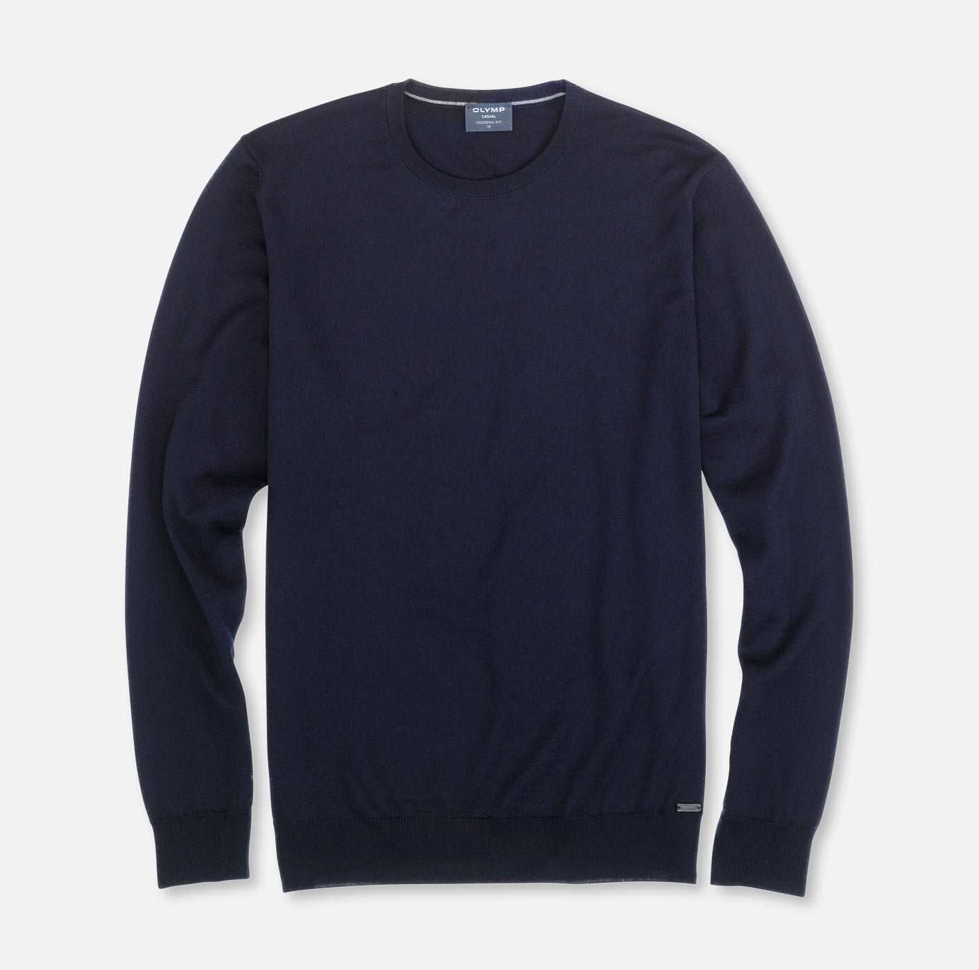Herbstzeit ist Pulloverzeit und da hat die fabelhafte Linie OLYMP Strick modern fit viele eindrucksvolle Kreationen zu bieten. Dieser einfarbige Pullover aus supersofter Merino-Wolle mit klassischem Rundhals-Ausschnitt ist ein überaus stilvolles Basic für die kühleren Tage. Die feine Qualität des Jersey-Gewebes punktet mit körpernaher Linie und elegantem Look. Der leicht taillierte Modern Fit folgt dem Trend und bringt die maskuline Silhouette optimal zur Geltung. Gerippte Strickbündchen an Kragen, Ärmelabschluss und Saum gewähren Formstabilität und setzen mit dem tonalen Strukturwechsel dezente und gleichzeitig attraktive visuelle Akzente.100% Schurwolle